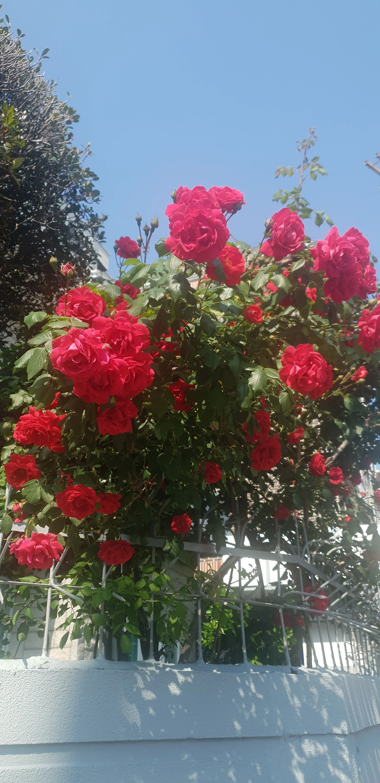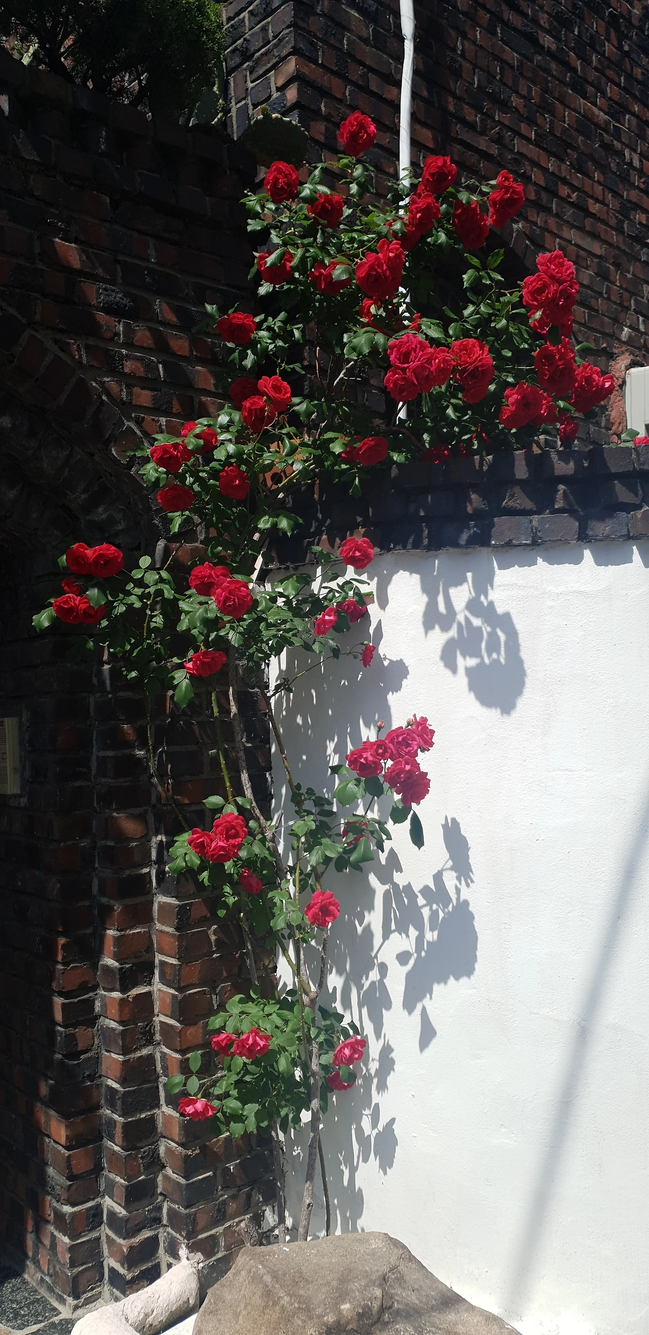 빨간 장미의 교과서이자 아이콘 같은 크고 풍성한 송이들이 그야말로 주렁주렁 달려 있다. 꽃을 달고 있는 가지가 위태롭게 보일 정도다. 앞집은 이층 양옥인데 몇 년에 한 번씩 칠도 새로 하고 철마다 꽃들이 소담스럽게 피는데 정작 주인장 얼굴은 한 번도 본 적이 없다. 이 집의 뒤편이 우리 빌라 베란다와 마주 보고 있는데, 그 뒤편에는 주인이 아닌 세입자가 살아서 작은 문이 따로 나있다. 이렇게 그 집의 뒷모습을 보고 거의 이십 년 넘게 살았는데, 여전히 그 집에 몇 가구가 사는지, 집주인이 누군지 모른다. 미스터리라면 미스터리다.