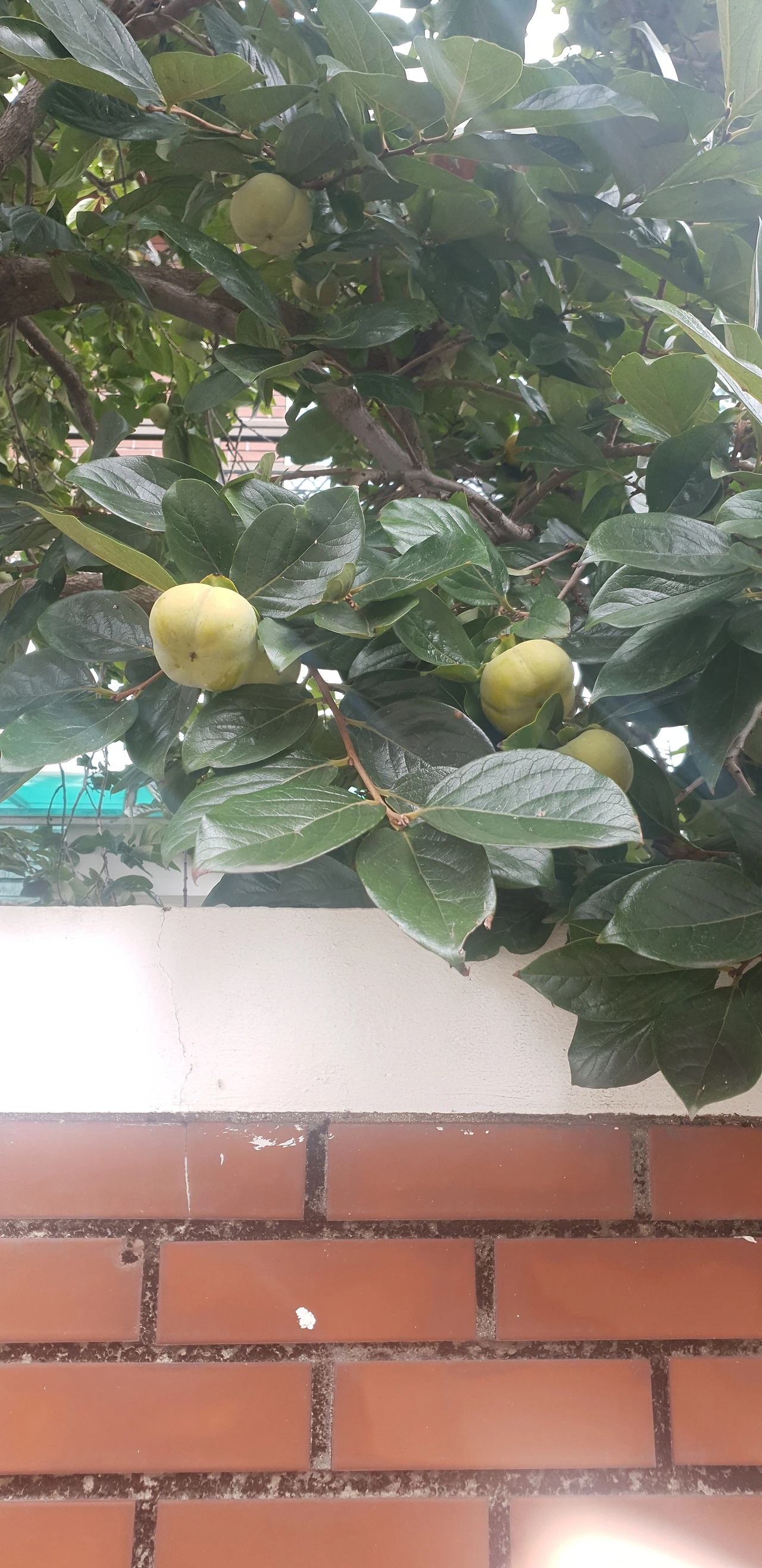 내가 사는 빌라를 중심으로 양 갈래로 난 골목 중 붉은 벽돌집이 연이어 있는 골목이 아닌 다른 골목에는 서로 다르게 생긴 단독 주택 몇 집이 연이어 있는 데, 세 집 중 두 집 꼴로 감나무가 있다. 사시사철 그 아래로 지나가며 올해는 언제 감이 열릴까 기다리는데, 시월이 되니 어김없이 큼직한 감이 달려 있다. 아직은 진한 초록이다. 굳지 먹지 않아도 떫으리라.