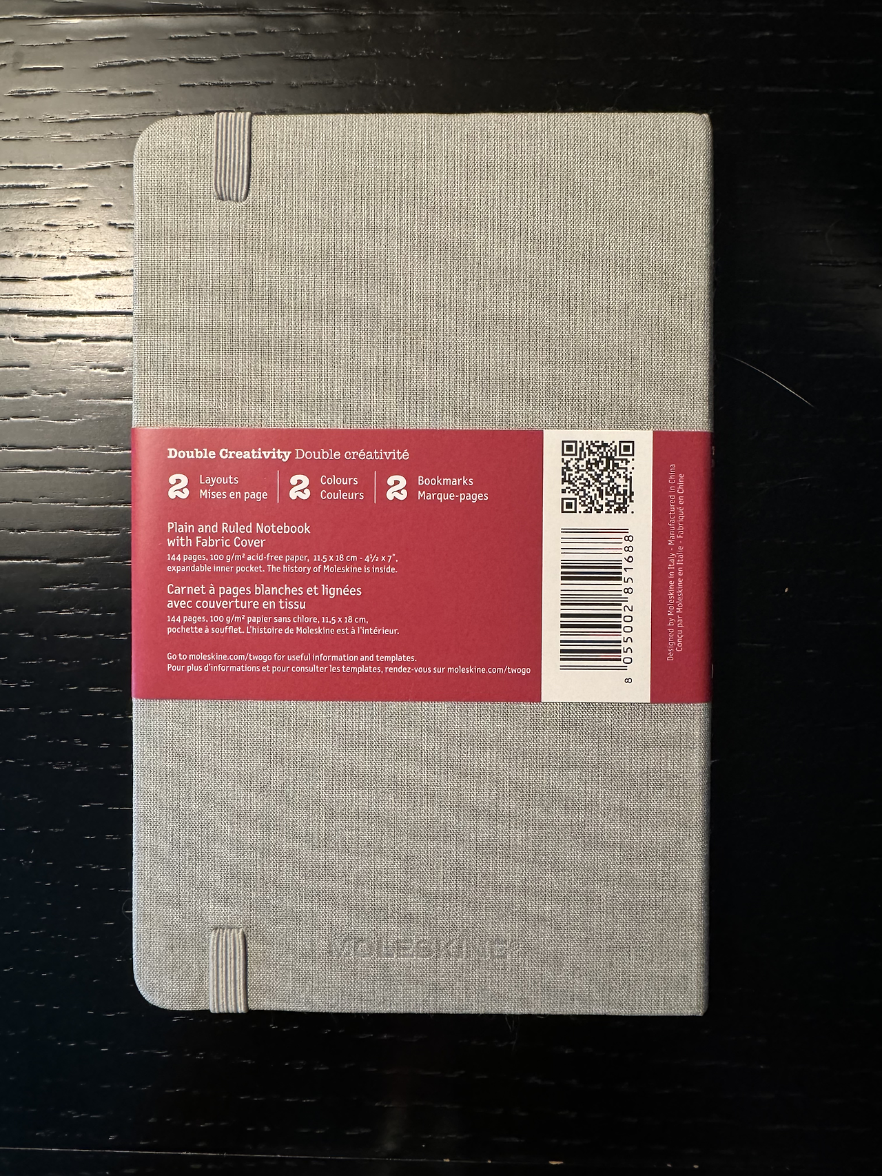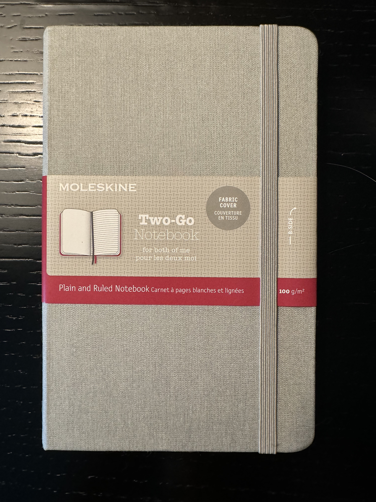 이 결정이 있고 국내에 있는 것들을 인터넷을 다시 찾아보았다. 이 two go 노트는 (이름도 잘 짓지 않았는가?) moleskine에서 나오는 노트로 종이 두께가 일단 그램수가 100g/m2으로 일반 몰스킨 노트보다 두껍다. 그리고 한 면은 무지, 다른 한 면은 줄이 쳐 있는 노트이다. 사이즈는 11.5*18cm로 너무 크지도 작지도 않아서 웬만한 작은 가방에도 가지고 다니기에 적당한다. 그리고 외부마감은 fabric으로 되어 있어서 고급스럽다. 이 노트를 처음 만난 것은 2018년 겨울 현 스텝들과 우리 사무소를 거쳐가 스텝들을 초대한 회사 크리스마스 기념 파티에 선물로 준비한 노트였다. 외부적 미관과 내부에 무지와 줄노트, 그리고 종이두께에 따른 유용성은 검증되었다. 그러나 그 당시에는 이노트로 평생 가야지 하는 마음은 아직 정하지 않았었다.