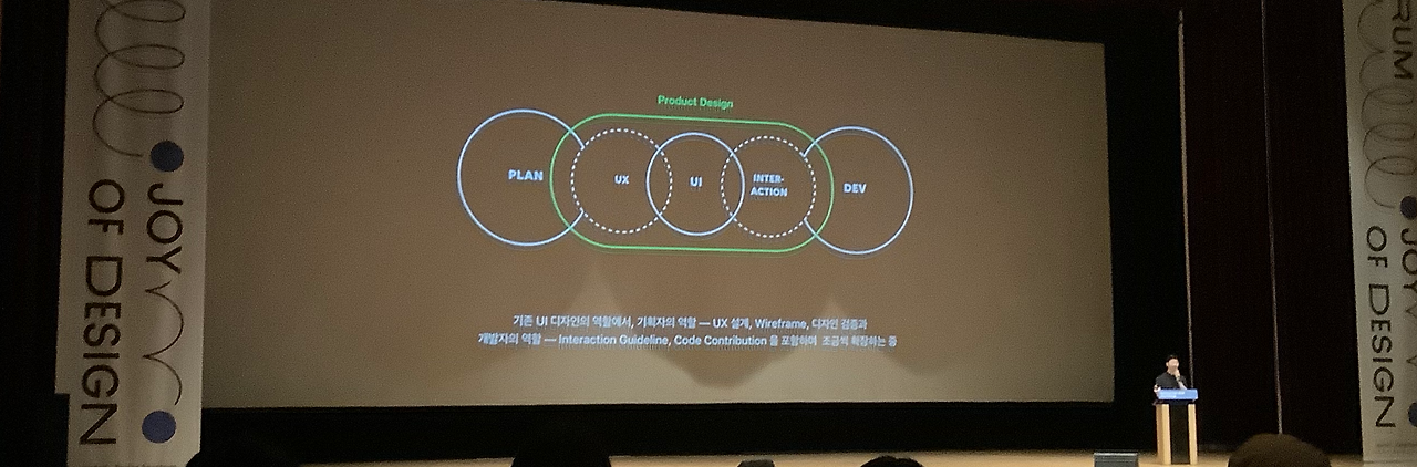 Joy of Design이라는 이름처럼 치열하지만 즐겁고 보람 있게 의미 있는 작업을 하는 디자이너들의 이야기는, 앞으로의 역할과 디자인 방향에 대해 고민해볼 수 있는 좋은 계기가 되었습니다. 그러나 30분 정도의 강연 시간 안에 회사 정보와 커리어 패스를 포함한 자기소개를 하고, 메시지까지 전달하기에는 좀 빠듯해 보였습니다.