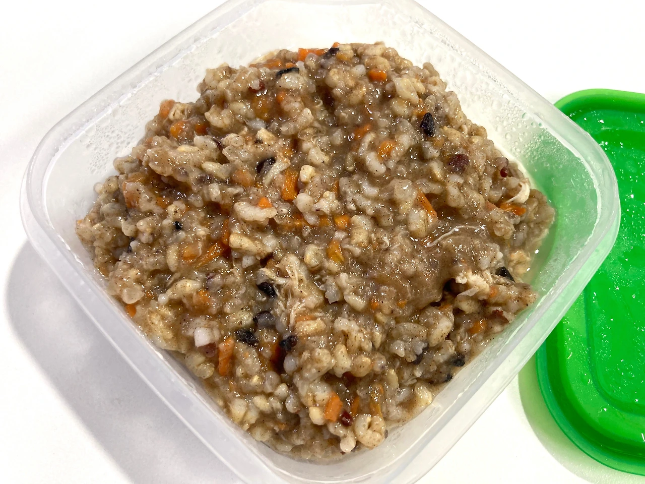 그리고 찹쌀. 찹쌀은 필수다. 찹쌀도 1컵을 넣는다. 찹쌀이 안 들어가면 끈기가 없어 되다만 밥 같거나 퍼진 죽 같다. 물론 댕댕이에게 먹일 때도 요리조리 고개를 돌리며 먹으려 들지 않는다.