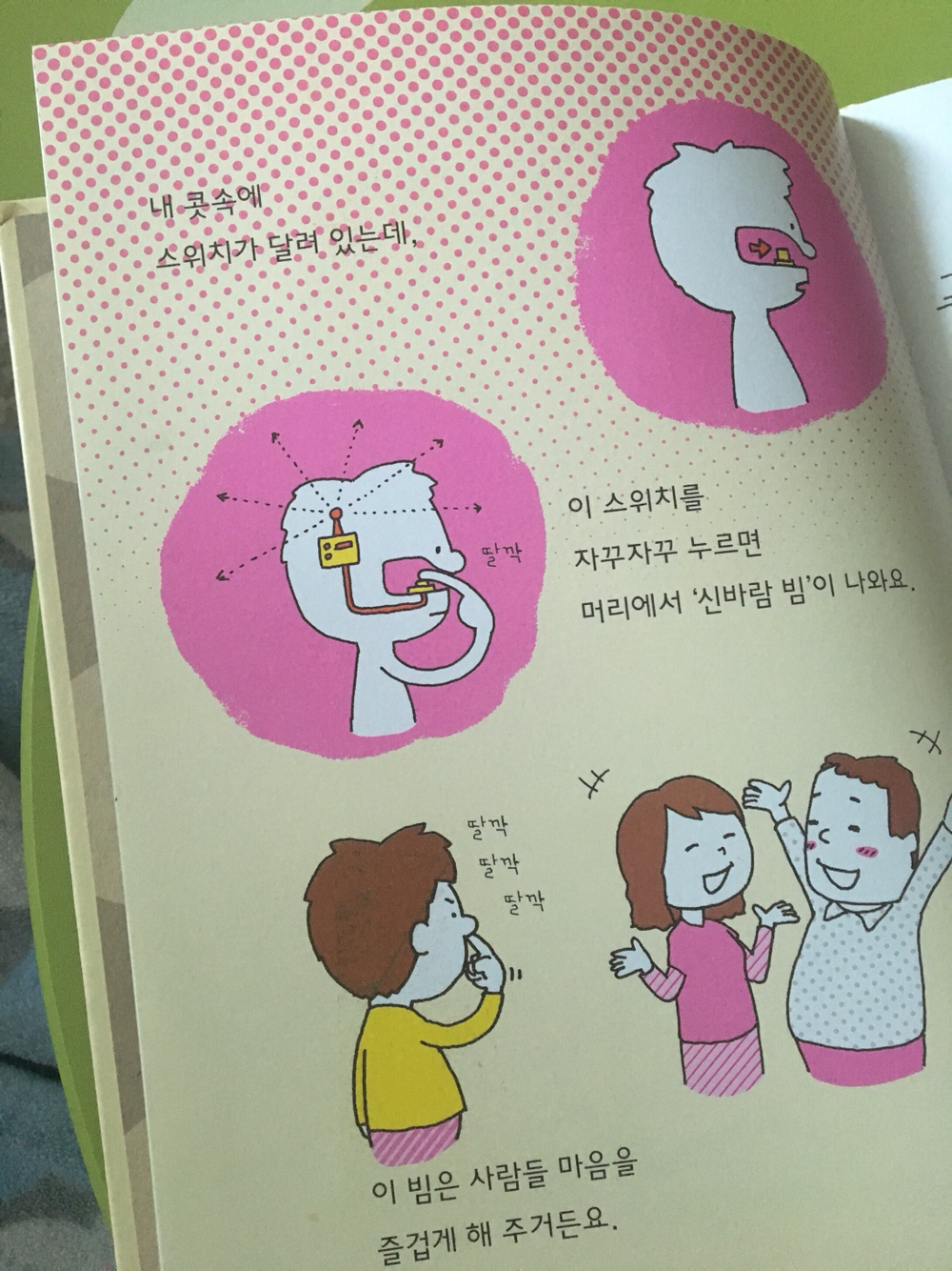 콧속의 스위치 빔을 누르면 주변 사람들을 즐겁게 만들 수 있다고 하네요.