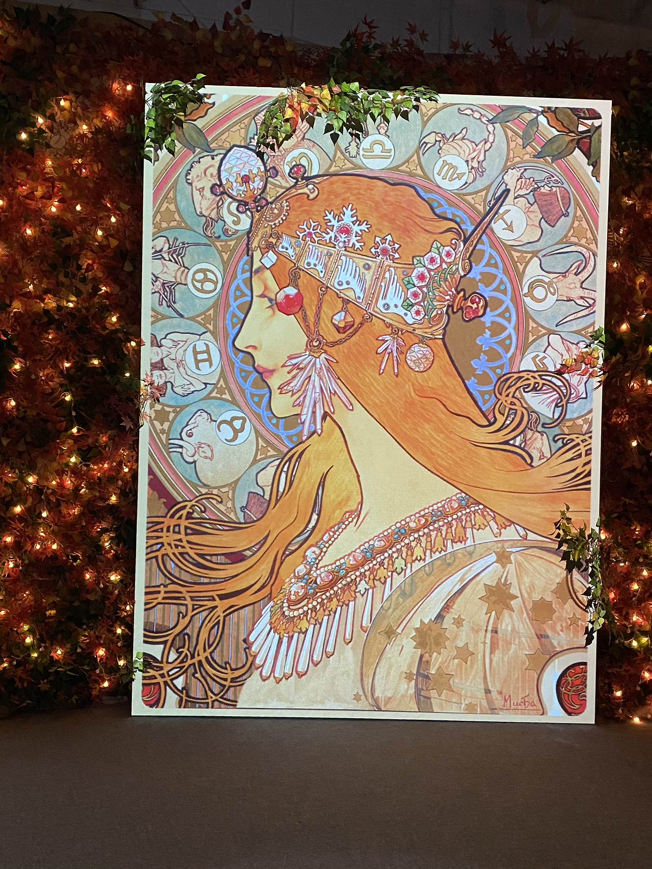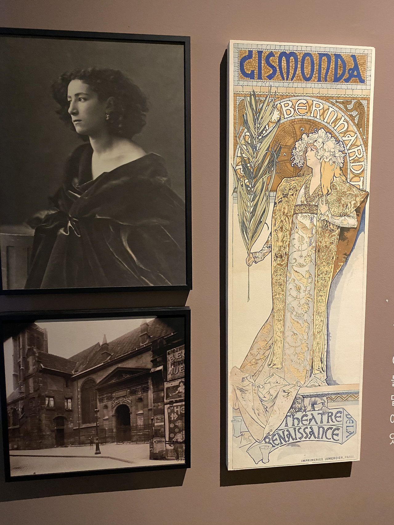 무하를 스타로 만들어준건’여신 사라’라 불리던 대배우 베르나르의 세로 2미터 포스터를 그리면서