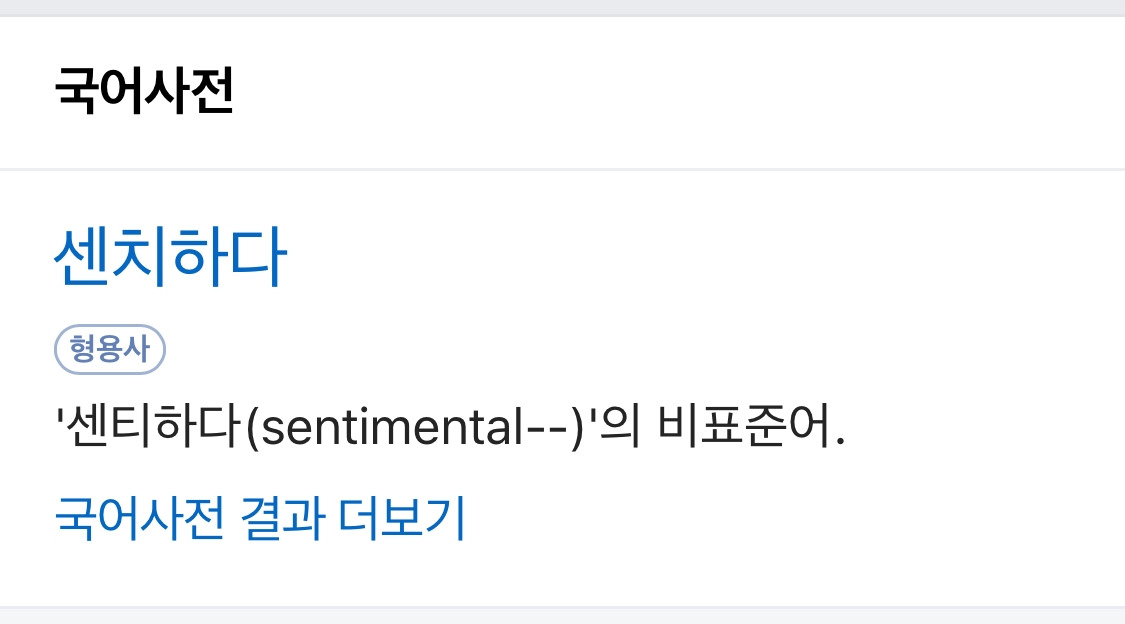역시 네이버는 위대하구나. 센치가 아니라 센티하다라고 해야한다. 그런데 이건 좀 분위기가 안 맞지않나?