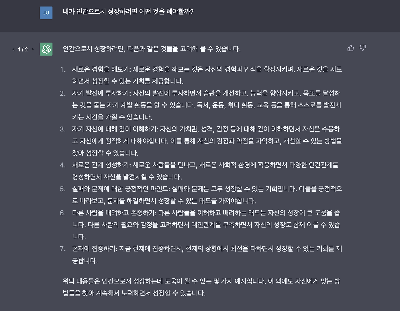 처음엔 이 양반이 진지하게 묻는데 장난하나- 하고 멱살을 잡으려고 했지만 빠르게 쏟아지는 챗지피티의 답변을 곁눈질로 보고 있던 나는 크게 뼈를 맞고 순살이 될 뻔했다.