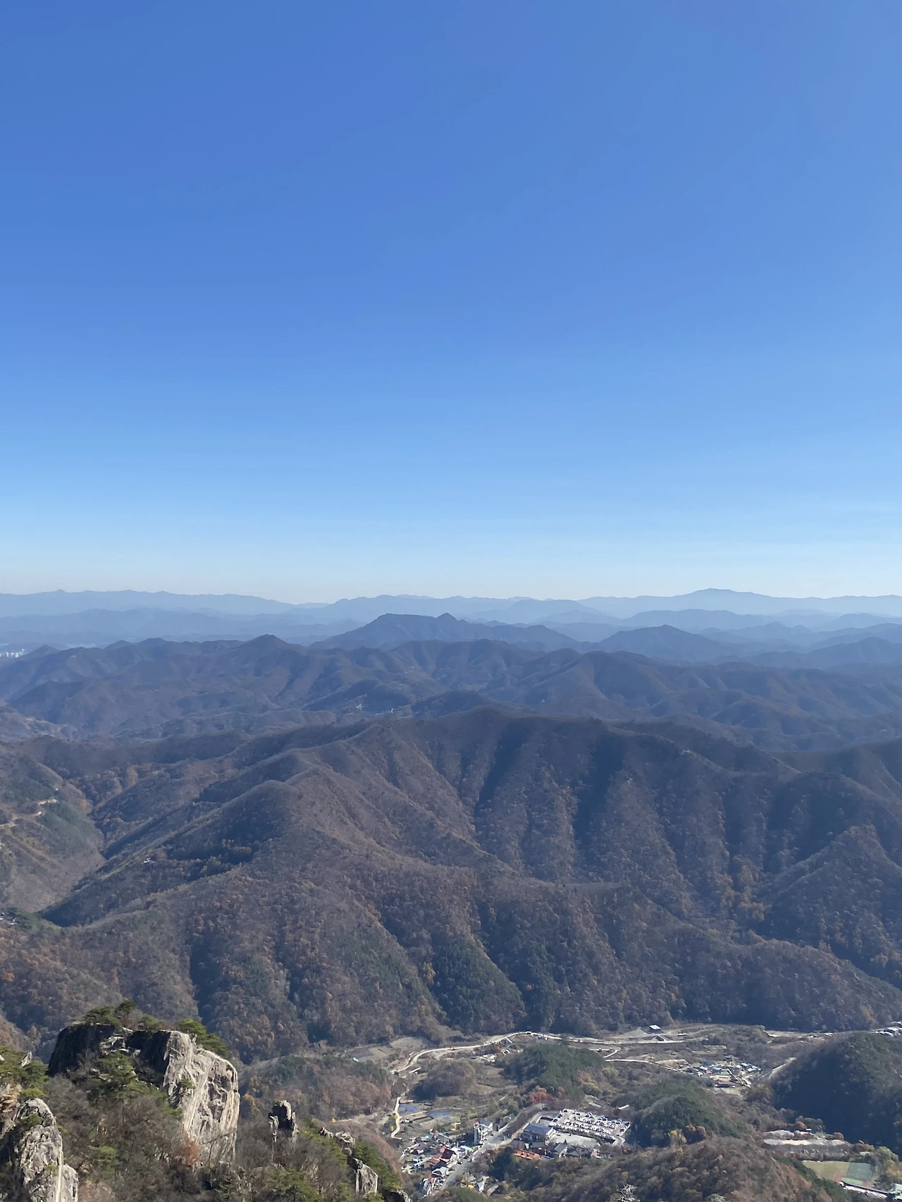 이제 정상을 향해 본격적으로 등산해야 했다. 자연이 만든 바위 계단을 한없이 오르며 헉헉댔다. 너른 바위가 있는 곳에 돗자리를 깔고 앉아 있던 부부가 우리를 보더니 샤인머스캣을 두 알씩 건네주었다. 중간 지점을 통과한 상 같았다. 샤인머스캣을 우물거리며 우리도 근처에 앉았다. 시야가 탁 트여 산 아래의 전경이 보였다. 등산을 좋아하는 친구는 등산하기 재미있는 산이 있고 재미없는 산이 있다고 말했다. 중간중간 풍경을 볼 수 있는 산은 재미있는 산, 나무로 빽빽해 바깥 풍경이 보이지 않는 산은 재미없는 산. 그래서 대둔산은 재미있는 산이라고. 그러면서 말을 이었다.