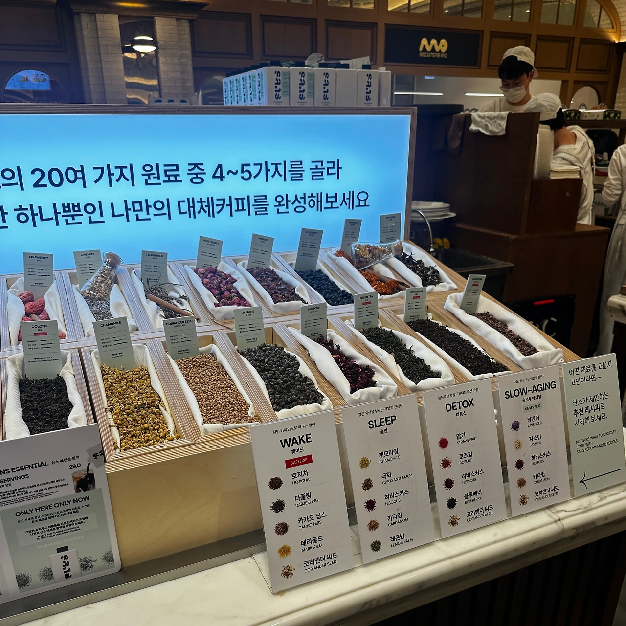 인스타 릴스 넘기다가 커피없는 커피라고 PR하길래 뭔 홍철없는 홍철팀같은 소리인가 하고 넘겼던 기억이 난다. 그런데 마침 신강 지하에서 매장을 발견해서 온김에 한 번 마셔봐야겠다는 싶었다. 브랜드 이름이자 컵에 적힌 문구인 sans는 ‘없다’는 뜻이라고 한다. 나는 왜 없다는 말을 보면 sans mom 이딴 단어만 생각나는지 모르겠네.