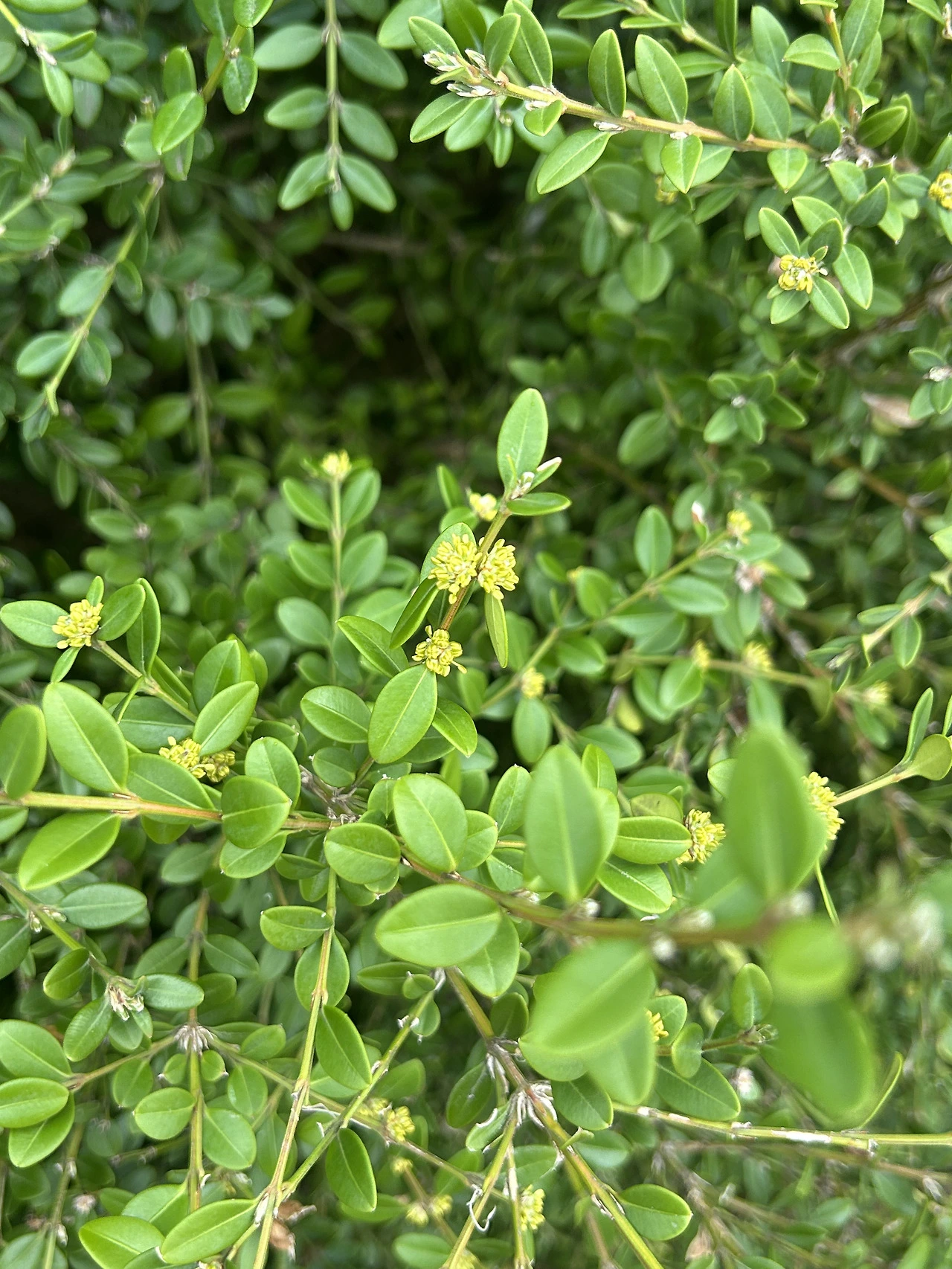 왼쪽 위부터 본가 근처 매화밭, 회양목, 산수유, 돌나물.