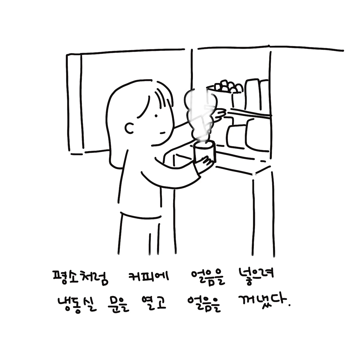 평소에 보온병에 음료를 넣어갈 때 시원하라고 냉동실에서 얼음을 꺼내 몇 알 넣던 습관이