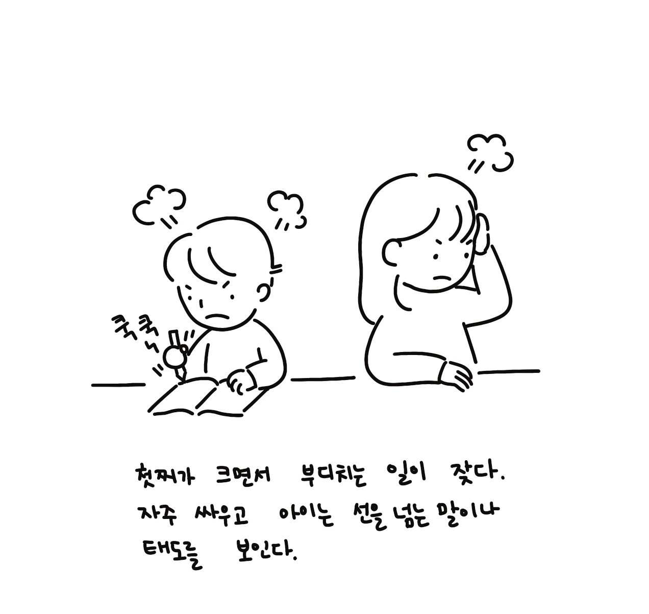 숙제를 봐주던 어느 날 자기 맘처럼 되지 않는 첫찌는 제말에 사사건건 토를 달고