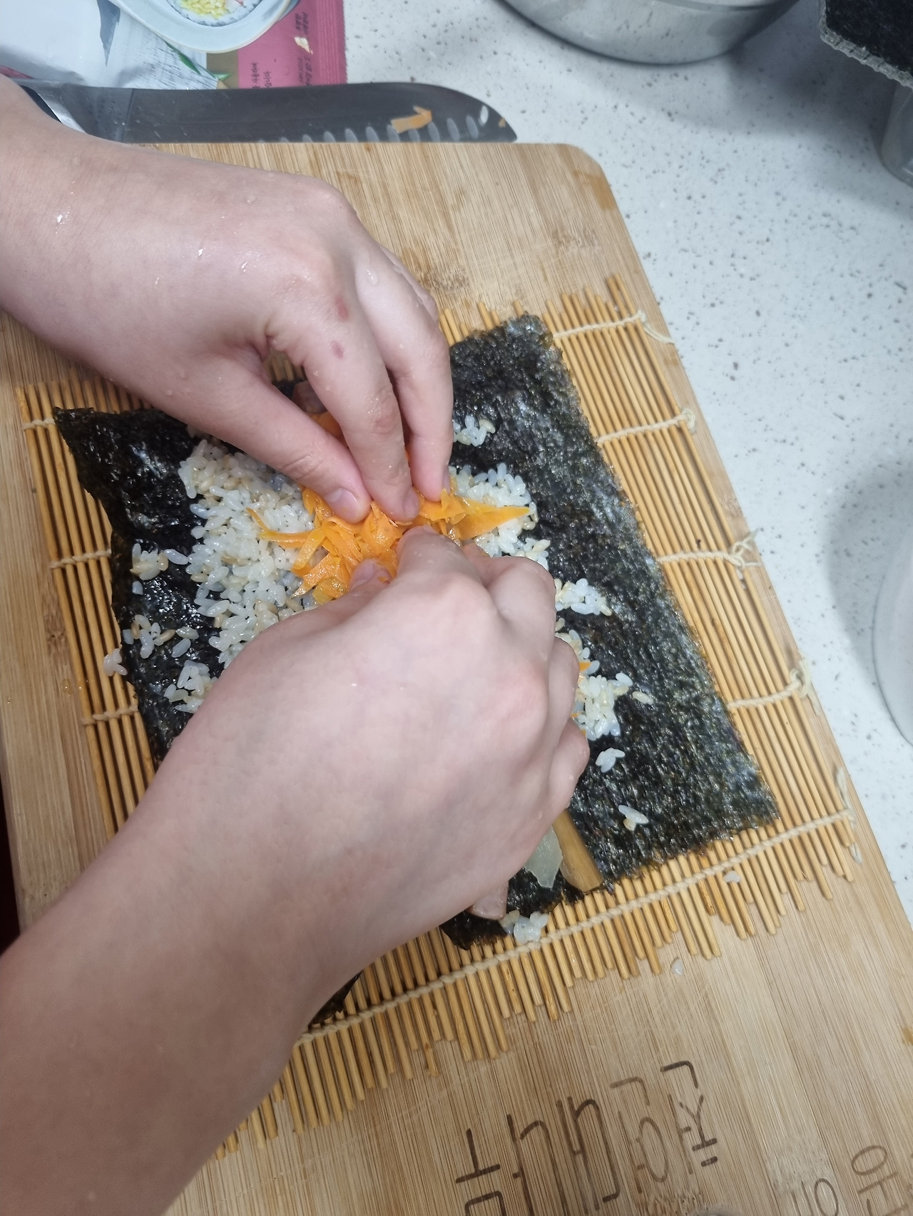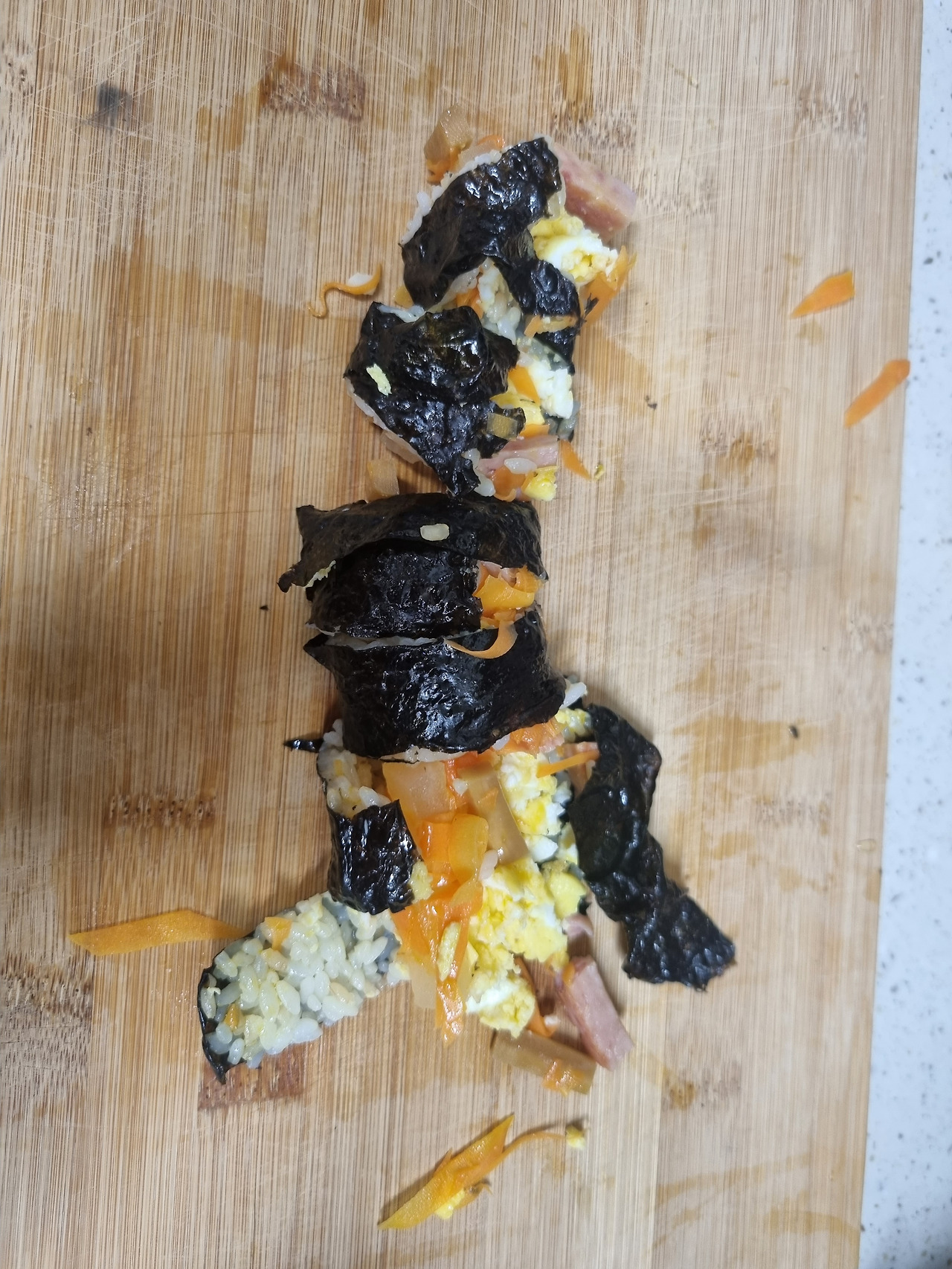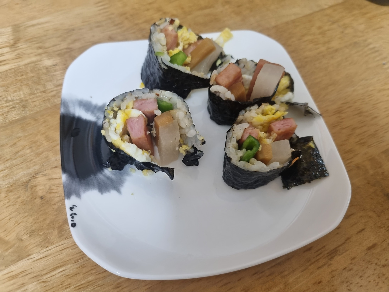 꽤나 먹음직스러워 보였고요. 아니 그보다는 밥은 물론 당근, 우엉, 단무지, 햄까지 뭐 하나 어려워 보이는 재료가 없어서 쉽게 도전할 수 있을 것 같았어요. 가물가물해진 기억이지만 김밥을 몇 번 만들었던 적도 있어도 그냥 마음만 먹으면 뚝딱 만들 수 있는 음식이었습니다. 김밥.