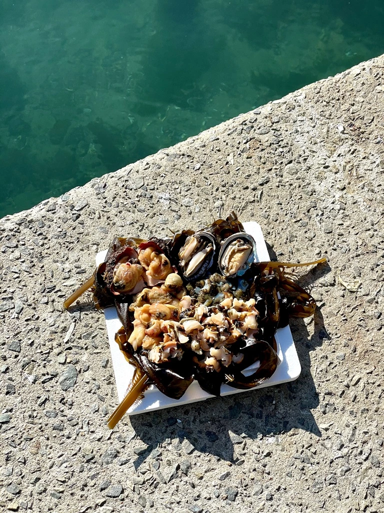청정 해역에서 잡아 올린 소라 멍게 해삼 등의 해산물은 싱싱한 바다의 맛이 그대로 살아 있다. 자연 그대로의 생태계에서 자연산 다시마와 바다이끼, 미역을 먹고 자라 살이 매우 차지고 맛이 옹골차다. 양식 전복이 2-3년 키워 출하라면 해녀의 전복은 자연의 상태에서 자라 손바닥만큼 크고 차진 식감이다. 자연산 전복이 차지하는 비율은 전체 생산량의 1% 정도에 불과. 명품 중의 명품 전복인 셈.