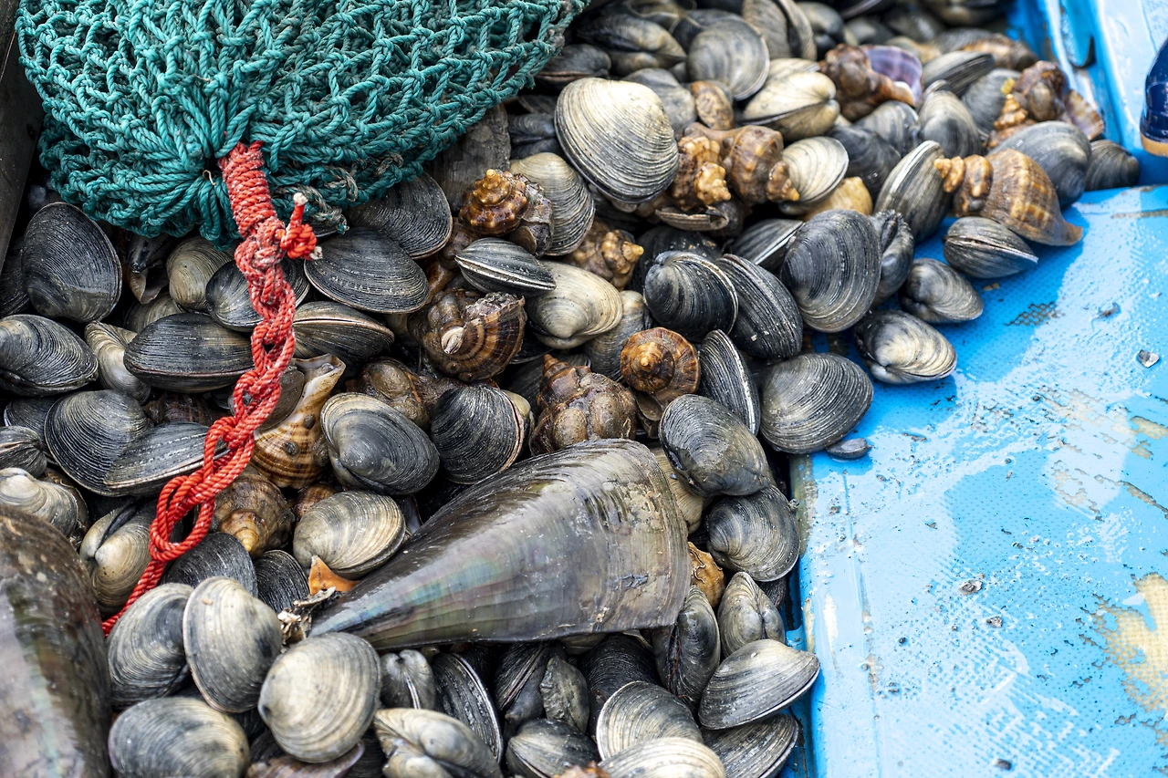 거친 바닷바람과 파도, 조류가 센 이곳이 거제 잠수사의 일터로 사계절 내내 자연산 왕우럭조개, 코끼리조개, 키조개, 바지락조개가 채취된다.