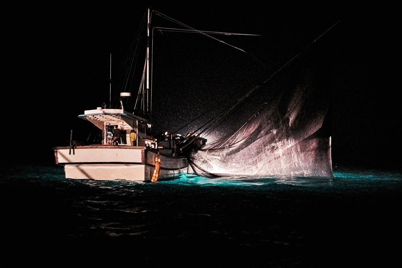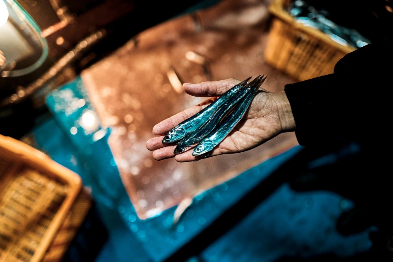 멸치 배는 조업 중에 닻을 내리지 않는다. 대신 배 앞머리에 80kg 무게의 닻을 놓고 멸치 떼가 보이면 선원이 들었다 놨다 하며 닻을 찧는 것이다. 그러는 사이 한쪽에선 사다리꼴로 생긴 그물이 서서히 바닷속에 잠기고 반대편에선 환한 백열등이 바다를 비춘다. 닻 찧는 소리에 놀라 튀어 오른 멸치를 불빛으로 유인해 그물로 몰아넣는 것이다.