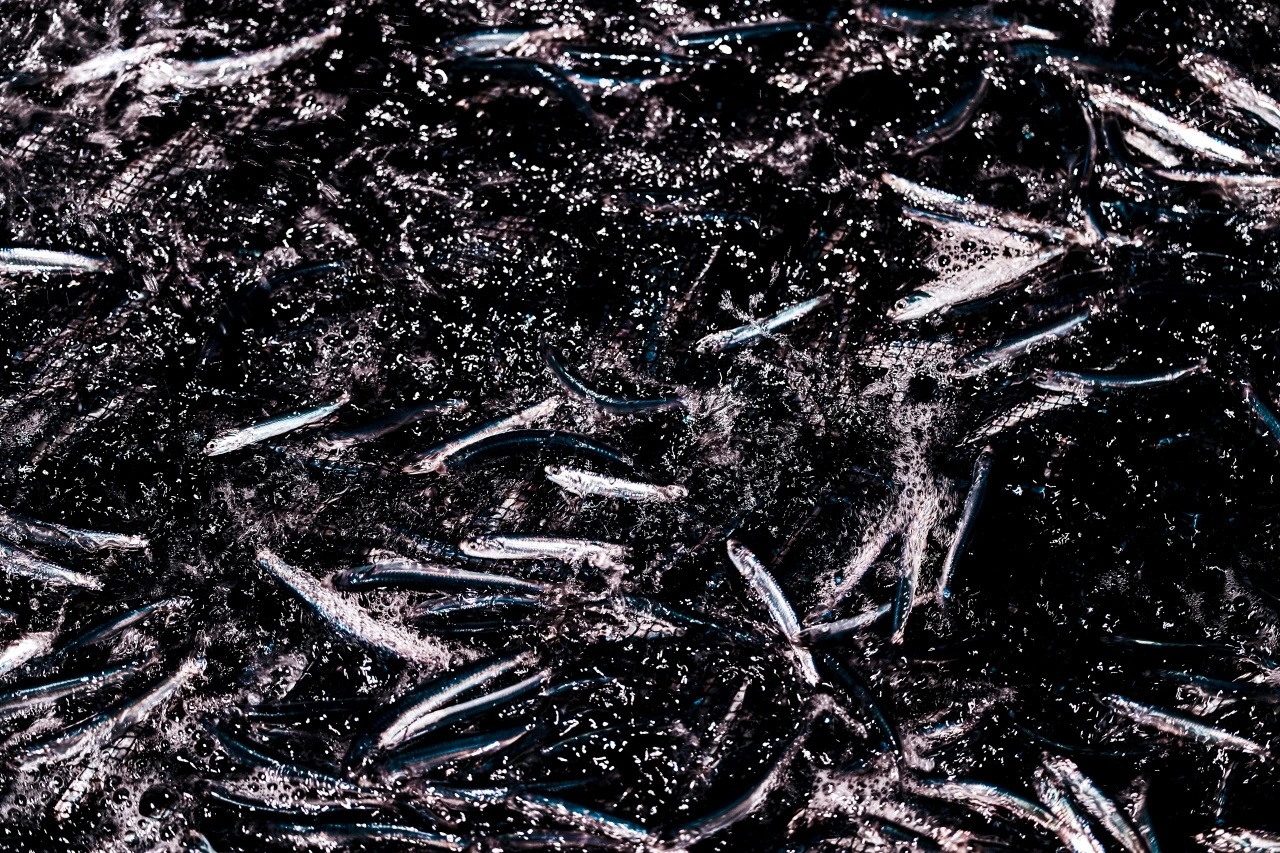 촤라락~ 은빛 멸치들이 쏟아져 내린다.
