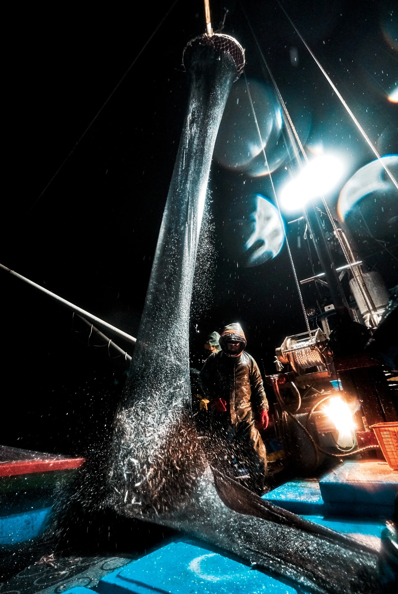 멸치 떼가 모인 곳을 찾는 것은 어류 탐지기와 선장의 수십 년 직관이 어우러진 고도의 탐색전이었다.