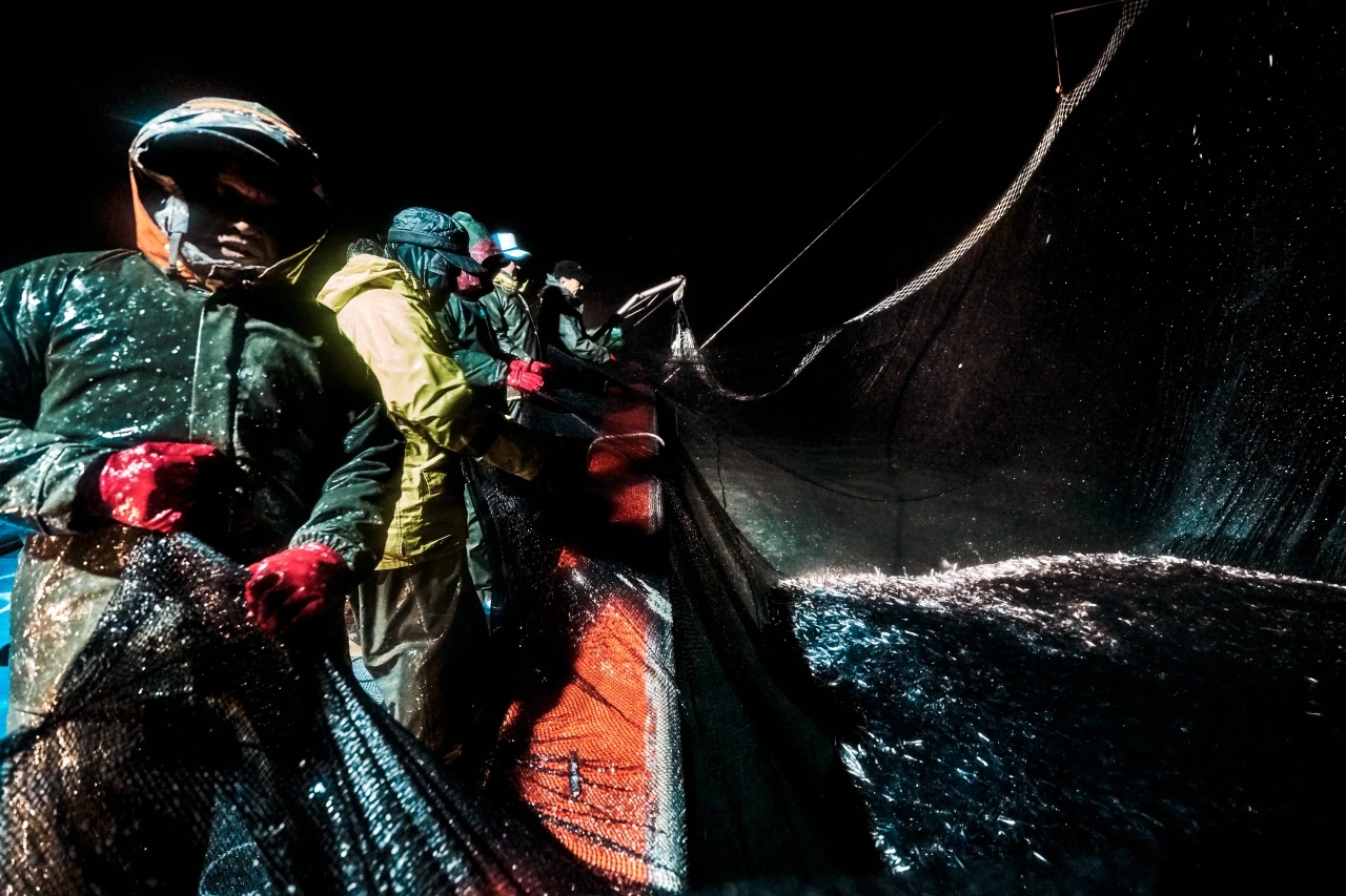 그물을 이동시키는 작업은 협동의 힘이 있어야 하고, 그물을 어창 입구에 잘 맞춰 멸치를 담는 작업은 한치의 실수도 없이 노련하게 해야 한다. 성질 급한 멸치는 팔딱팔딱 몇 초만에 금방 죽어 버리기 때문에 재빨리 어창에 넣는 것이 중요하다. 그러고 보니 멸치 배 선원들은 각자의 역할이 정확하게 정해져 있었다. 닻을 찧고, 조명을 들고, 어창에 멸치를 쏟고, 정리하고... 그물을 올릴 때는 힘을 합하고 다시 각자 맡은 자리로 일사불란하게 움직였다.