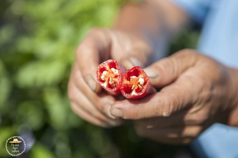 고추를 비롯해 사과, 배추, 당근, 쌀 등 12가지 과일과 채소를 모두 유기농으로 재배하고 있다. 유기농 농가는 많지만 이렇게 다양한 작물을 모두 유기농으로 재배하는 곳은 많지 않다고 한다. 그가 친환경 농업에 얼만큼 노력과 열정을 기울였는지 짐작할 수 있다. 이 가운데 고추는 약 500평 정도에서 수확하고 있다. 고추는 병해충에 약해 유기농으로 재배하기 쉽지 않은 작물이다. 특히 해발이 높은 노지에서 재배하는 유기농 고추는 더욱 드물다.
