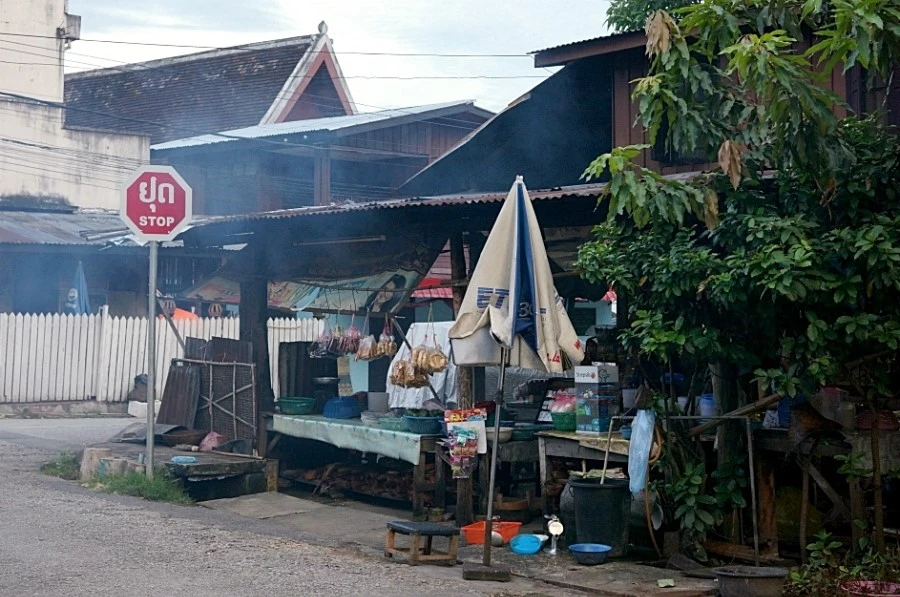 알람 소리에 잠에서 깬 동생이 나를 흔들어 깨운다. 비몽사몽 졸린 눈을 뜨고 밖으로 나오니 한기가 느껴진다. 라오스의 아침 공기에는 연기 냄새가 묻어있다. 닭우는 소리와 밥 짓는 연기가 골목 안을 가득 채운다. 집집마다 달그락 거리는 소리가 나는 걸 보니 엄마들은 아침밥을 짓고 있는 모양이다.