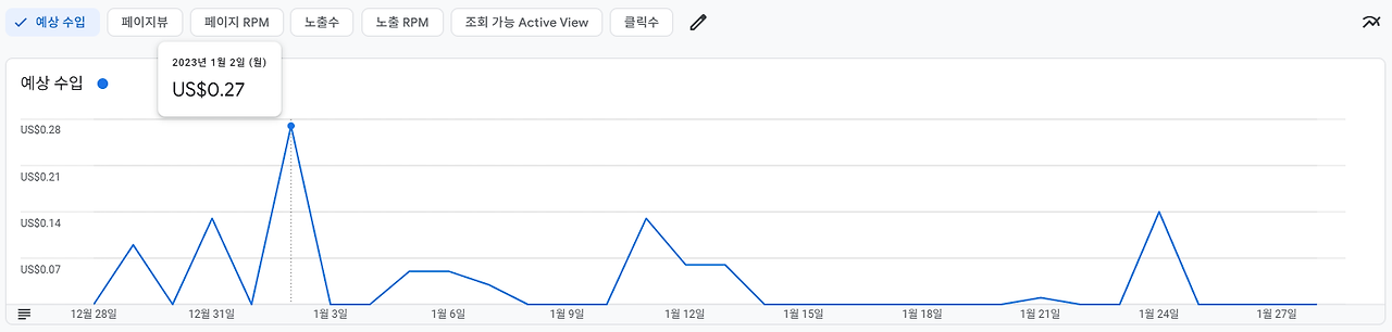 이슈가 꺼지면 바로 하루 1~2달러 수준의 수익으로 돌아올 것이 분명해 보입니다. 1~2달러를 월로 계산하면 약 5만원 정도가 되기에 글을 꾸준히 써서 안정적인 10만원대로 만들어내는 것을 목표로 정했습니다.