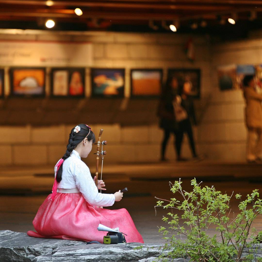 문득 눈을 떴다. 중년 남성과 그 아들인 듯한 분이 서서 연주를 듣고 있었다. 통행에 방해되지 않게 약간 멀리에서, 그러나 서로 대화도 하지 않고 매우 집중해서 듣고 있었다. 해금 소리가 두 분의 귀에 오롯이 빨려 들어가는 것을 느낄 정도였다. 순간 우리는 스치는 사람들 속, 붙박이가 되어 우리만의 음악회를 열었다.
