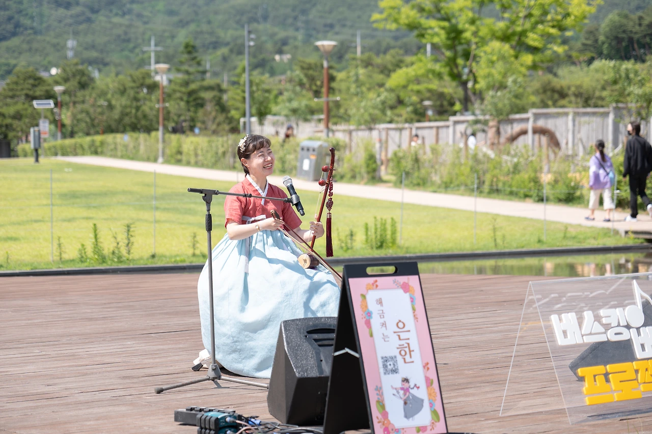 저번에도 말했지만 집에서부터 한복을 입고 나온다. 최대한 시원해 보이는 색과 재질의 한복을 입지만 속바지 속치마 등도 갖춰 입어야 한다. 치마 속 단열재다. 집 밖을 나서자마자 땀 폭포수 속에 들어앉아 홀로 득도하는 기분이다. 원래는 전통한복(속치마를 세 벌 정도 겹쳐입는다.)에 반팔 저고리로 버텼지만, 2018년이었나, 기록적인 더위가 한국을 덮을 때 결국 속치마 한 벌 입는 생활한복을 구매해 버렸다. 뭔가 지는 느낌이 들어도 어쩔 수 없었다. 빵실한 한복 치마는 자존심이지만 올해에 와서는 결국 인견 속바지만 입고 연주하는 날도 생겨버렸다. 일단 살고 봐야 한다.