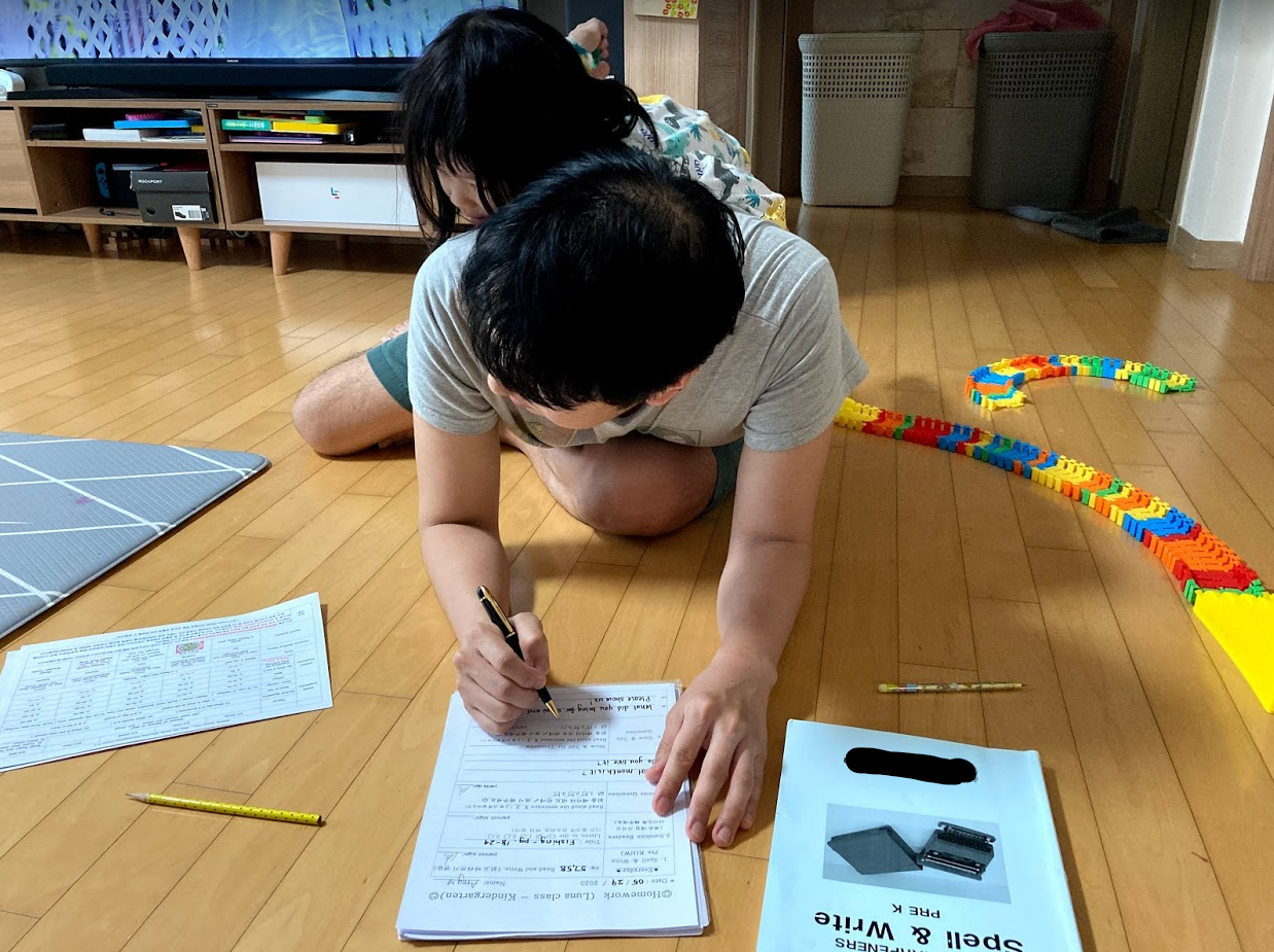 그리고 둘째 유치원 숙제를 챙기고, 준비물을 확인한다.