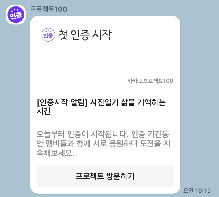인증 시작 알림이 떴다. 오늘부터 첫 기록 시작이다.