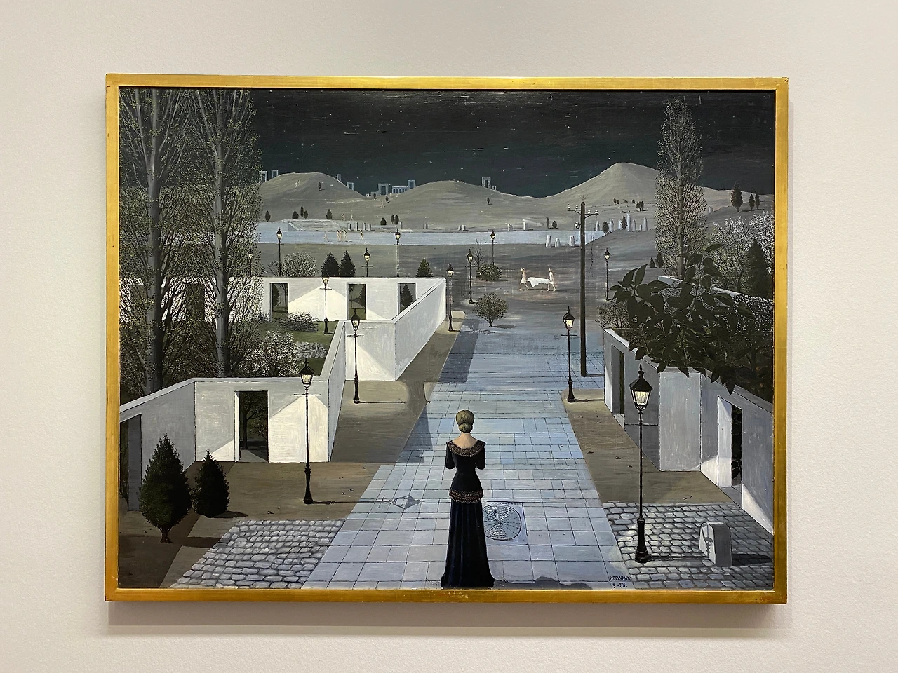 어느 날 오후엔 알베르티나 미술관에 갔다. 뒤러의 초록 토끼를 보러 간 길이었는데, 예상치 못한 그림 앞에서 발걸음이 멈췄다. 폴 델보의 '랜턴이 있는 풍경'. 가로등 불빛 아래 검은 옷을 입은 여인이 홀로 서 있고, 저 멀리 시신을 운반하는 사람들이 보였다. 삶과 죽음이 나란히 선 고요한 풍경이었다.
