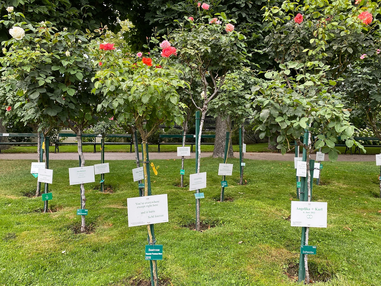 처음엔 그냥 시적인 문구인 줄 알았다. 하지만 자세히 보니 장미 한 그루 한 그루마다 모두 다른 이름표가 달려 있었다. 천천히 걸으며 하나하나 읽어보았다. 마리아, 한스, 루나... 어떤 것은 사람 이름이었고, 어떤 것은 애칭이었고, 어떤 것은 반려동물의 이름이었다.