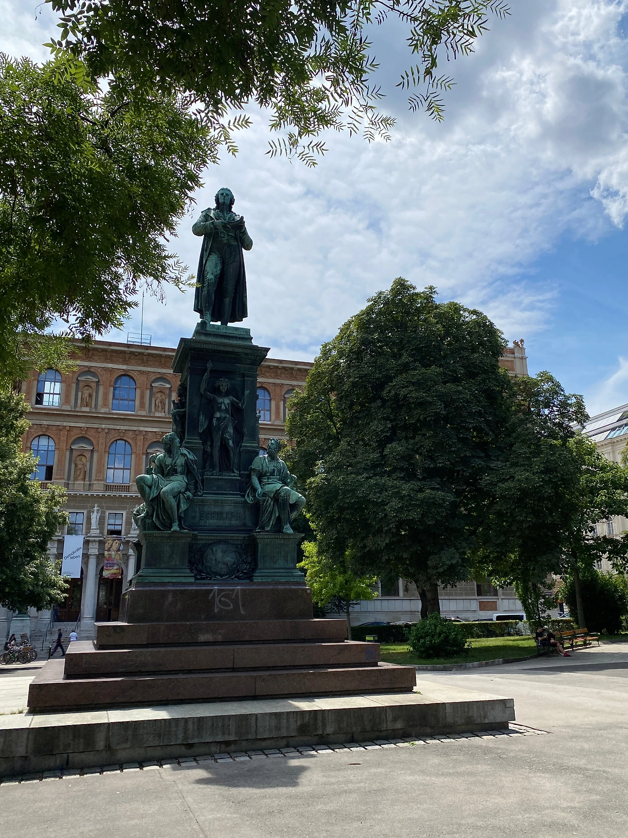 칼스플라츠(Karlsplatz) 역에서 도심 순환도로 방향으로 걷다가 비슷한 건물들 사이에서 헤매게 되었다. 30분이 넘도록 제자리를 빙빙 돌다가 한 블록 옆, 거기서 쉴러 공원을 만났다. 괴테와 함께 독일 고전주의 문호로 불리는 쉴러의 동상이 공원 중앙에 당당한 모습으로 자리를 지키고 있었다. 저 멀리 큰길 건너편에는 괴테의 동상이 희미하게 보였다.