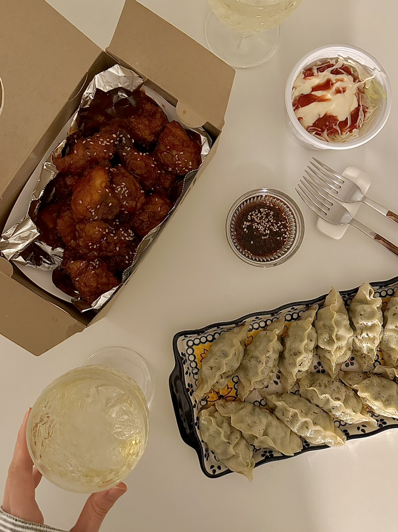금요일 밤이면 우리는 편한 파자마로 갈아입고 집 안을 환히 비추는 LED 전등 대신 낮은 조도의 스탠드를 켠다. TV 앞에 스툴과 의자를 가져다 놓고 커튼을 치면 아주 작은 홈시네마로 변신하는데, 이 공간의 포인트는 '자유로움'이다. 여기서는 신나게 떠들거나 박장대소를 할 수 있다. 화장실이 가고 싶으면 몇 번이든 다녀올 수 있고 음식이 떨어지면 언제든 보충이 가능하다. 이를테면 방금 막 구워낸 뜨끈뜨끈한 군만두 같은 것도 냄새나 소리에 신경 쓰지 않고 호호 불어가며 맛볼 수 있다. 여기는 2인 전용의 우리 세상이니까.