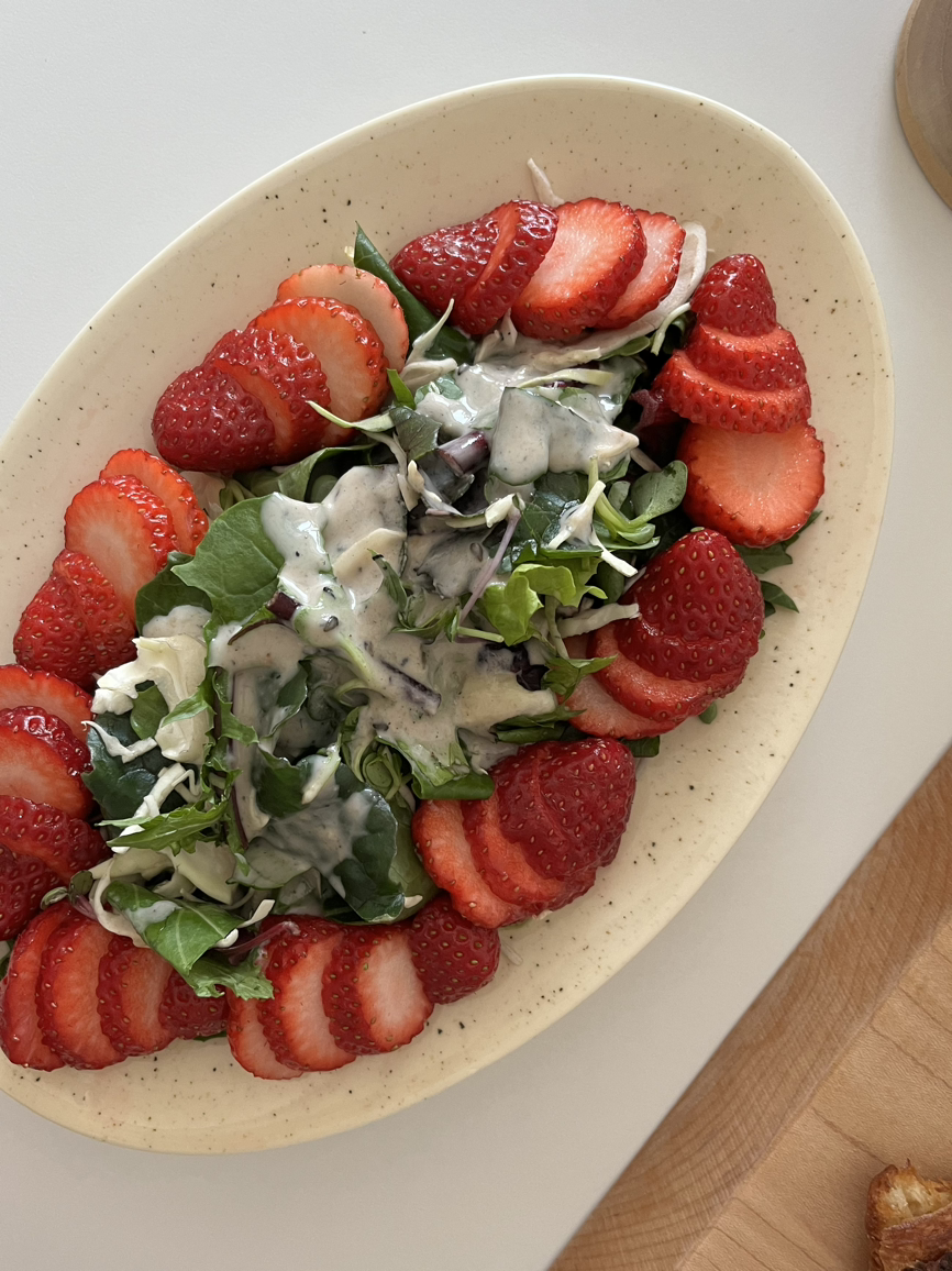 참, 봄철의 끝물에는 물러가는 딸기를 적당히 썰어 샐러드도 만들었지.