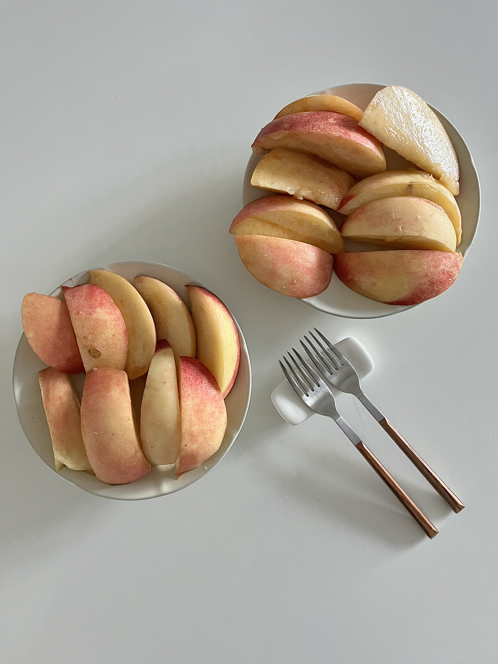 속상할 때마다, 어머님이 보내 주신 복숭아를 꺼내어 먹었다. 박스에서 잘 익은 황도를 두 개 꺼내 깨끗이 씻고, 먹기 좋은 크기로 칼집을 낸다. 딸이 가장 좋아하는 과일이 뭔지 모르는 아빠는 한 번도 집에 복숭아를 사 들고 온 적이 없었다. 그러나 나는 아빠가 좋아하는 과일이 뭔지 잘 알고 있다. 챙김 받는 사람과 챙겨 주는 사람의 차이다. 평생 큰 상에서 식사를 했던 사람은 모를 것이다. 작은 상에 앉아야 했던 사람들을 끈질기게 따라다닌, 돌봄과 양보라는 미명 아래 행해진 차별을. 나는 남편을 부르고 부드러운 과육에 상처가 나지 않도록 조심히 떼어, 좋아하는 그릇에 가지런히 옮겨 담는다.
