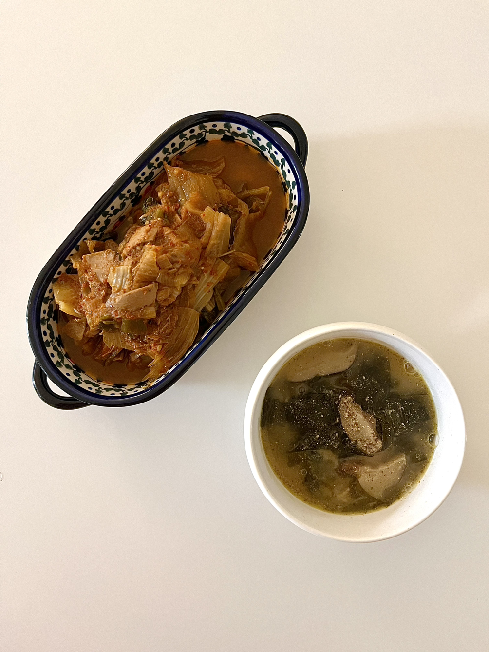 주말에는 스님의 레시피를 따라 표고버섯과 들깨가루를 넣은 미역국을 만들었다.