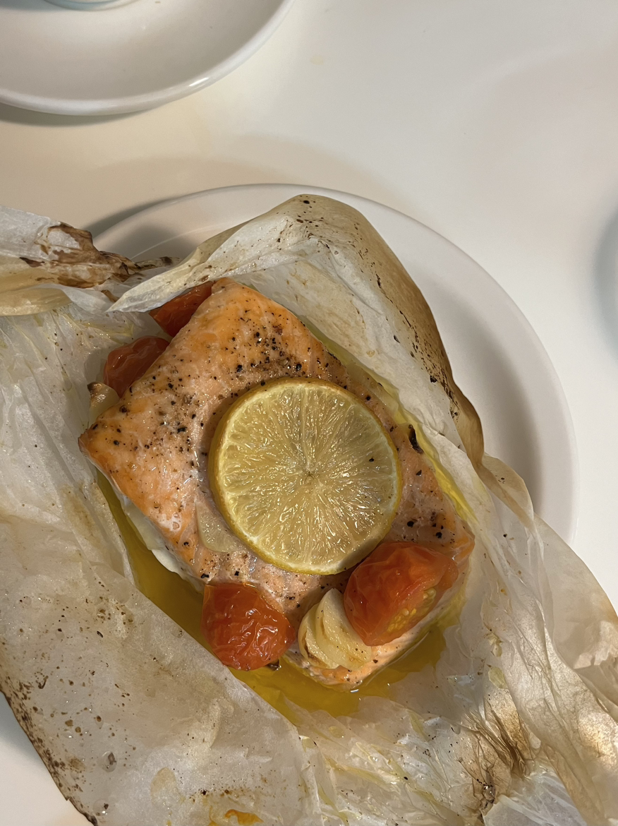메인 디시_각종 야채와 함께 구워낸 연어 파피요트 & 겉바속촉의 맛, 독일식 족발 슈바인학센