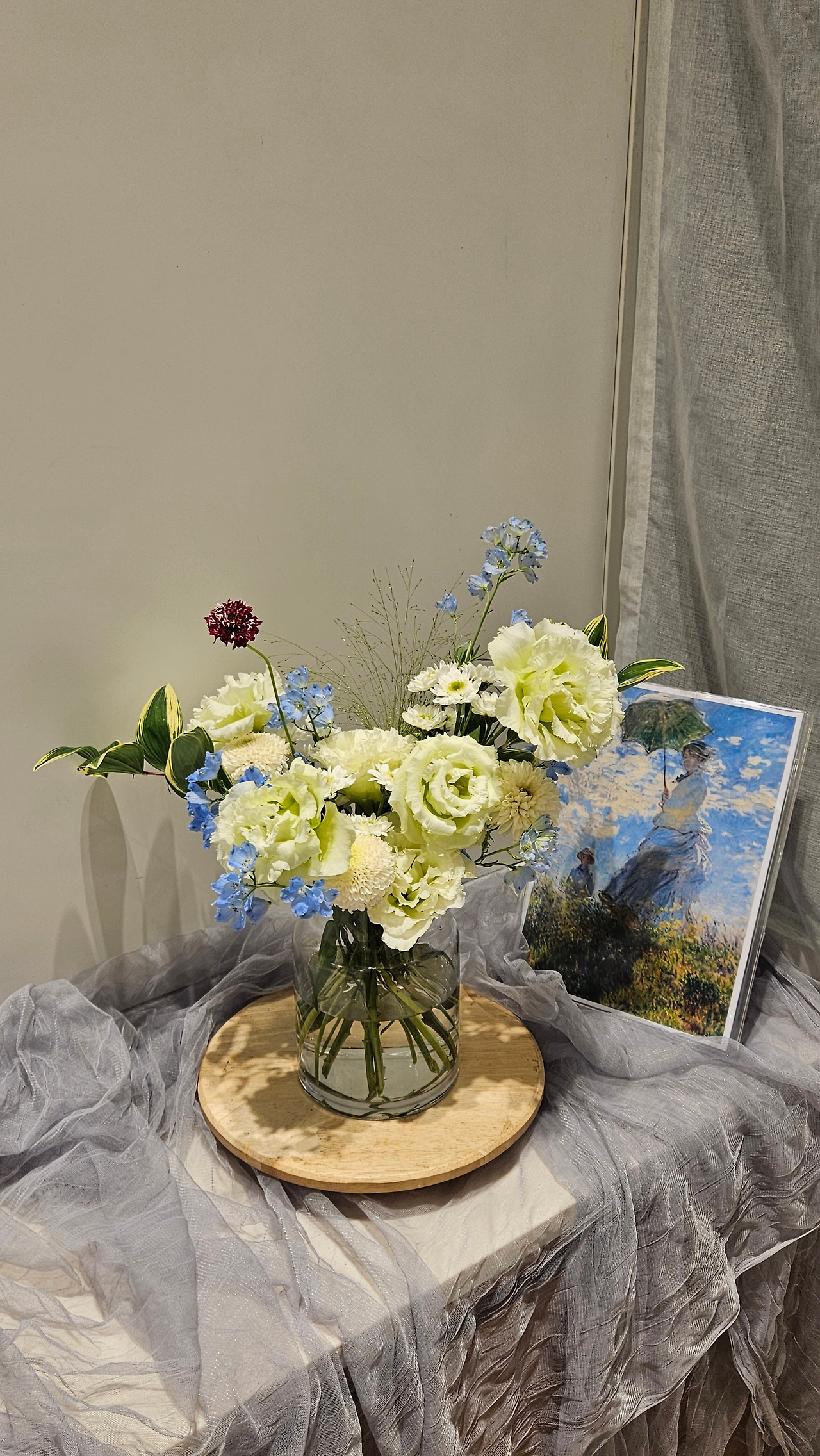 요즘은 커다란 사건이 없어도 마음이 힘들다. 업(業)에 정이 떨어져서 이런 건지 단순히 더위를 먹어서 기운이 쳐지는 건지 모르겠다. 우연히 본 플라워클래스의 주제가 '명화'였다. 모네의 작품을 모티브 삼아 비슷한 색감의 꽃꽂이와 꽃다발 작업을 하는 수업이었다. 오랑주리와 지베르니에서 느꼈던 평화로움이 떠올랐다. 힘든 일상에 일주일에 한 번이라도 마음을 둘 곳이 있으면 좋겠다는 생각에 수강료의 압박을 애써 흐린 눈으로 무시하며 신청해 버렸다. 화요일 퇴근 후에 수업을 듣고 있다. 꽃을 만질 때는 다른 생각이 없어지고 꽃에만 집중할 수 있어서 좋다. 꽃 이름을 하나하나 알게 되는 것도 즐겁다. 꽃을 다루는 일을 하면 어떨까, 하다가 일이 되어도 계속 좋아할 수 있을까? 하는 생각에 멈칫한다. 세상에는 자기가 하는 일을 좋아하는 사람들이 많아 보인다. 생기 가득한 눈빛으로 자신의 일에 대해 이야기하는 사람들을 보면 그 열정이 너무 반짝반짝해서 질투가 난다. 나는 어떤 일을 하기 전부터도 그 일을 하며 겪을 수 있는 가장 힘든 점을 떠올리며 마음이 식는데. 현업에서 부딪치면서도 식지 않는 애정이란 어떤 것일까 궁금하다. 모두가 열정과 야망을 가지고 살 필요는 없지, 잔잔하게 가늘고 길게 살아가는 사람도 있는 거지, 하다가도 나도 저렇게 반짝반짝 빛나는 마음으로 말할 수 있는 일을 하며 살고 싶다는 생각을 한다.