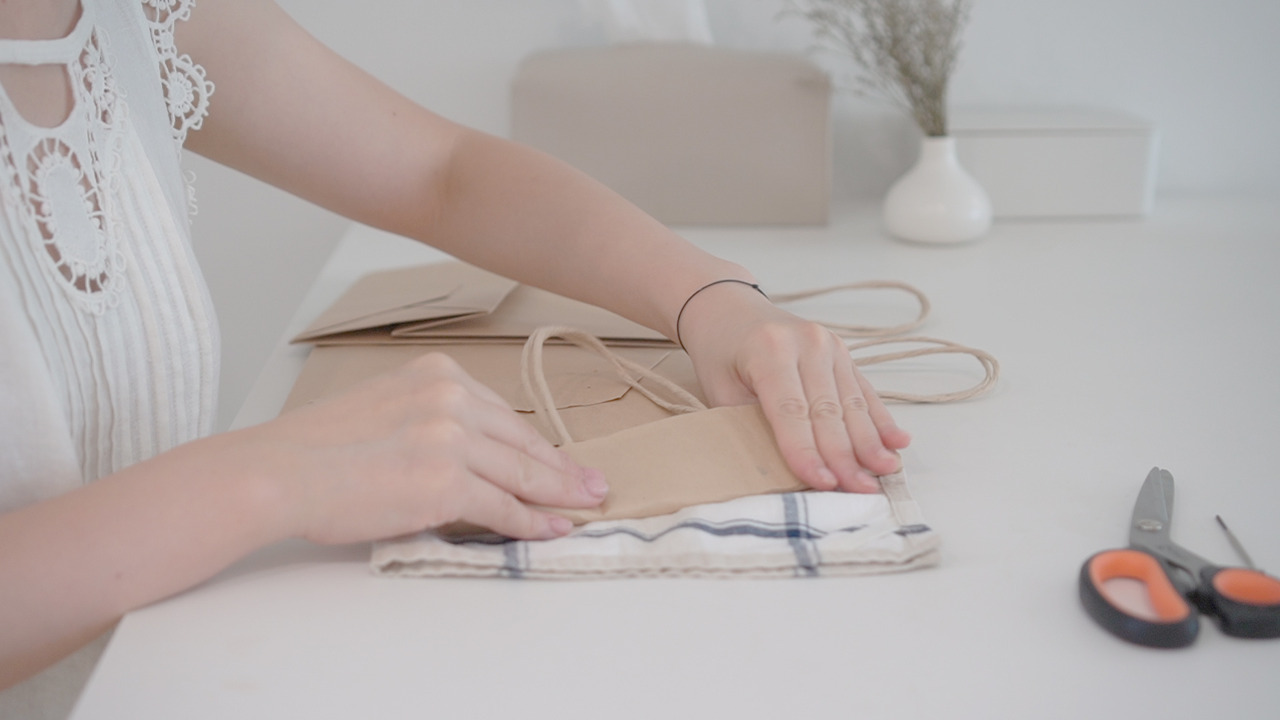 (1) 우선 같은 크기의 쇼핑백 2-3개를 모아서 같은 길이로 접어줍니다.