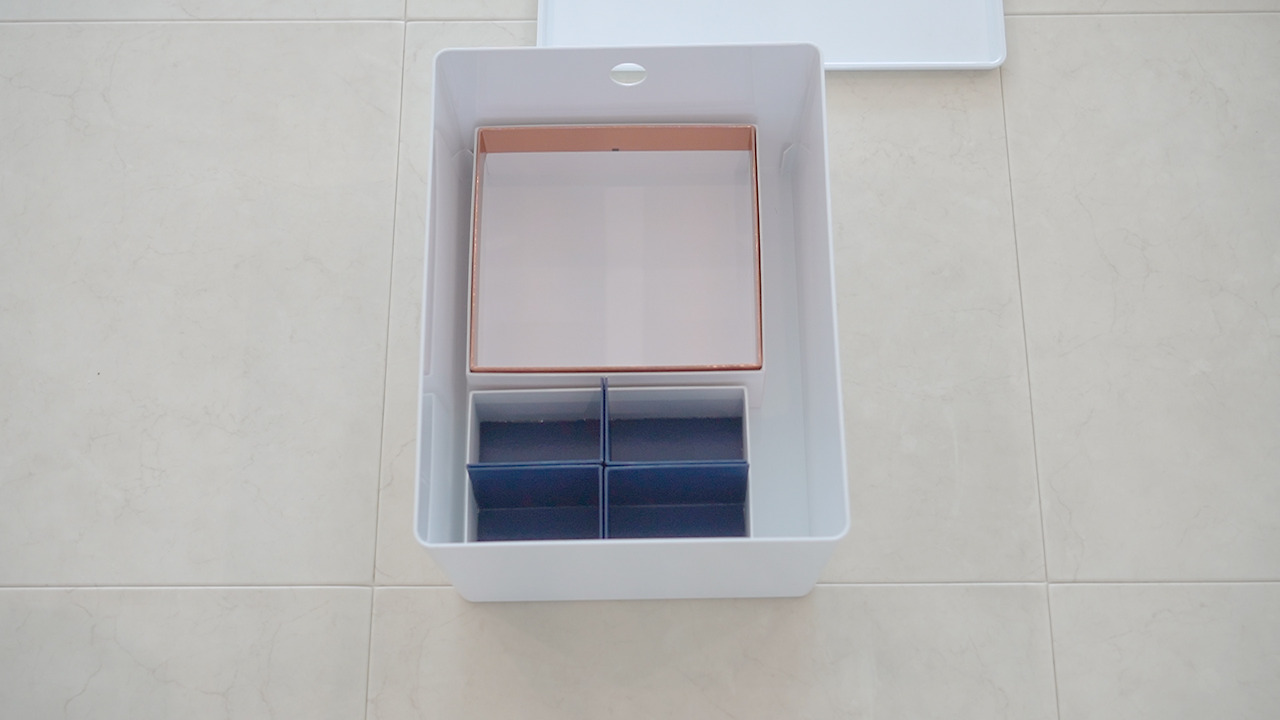 저는 같은 방식으로 하나 더 만들어줬습니다. 4칸으로 나눠져 있어서 작은 물건들 나눠 보관하기 좋겠죠?