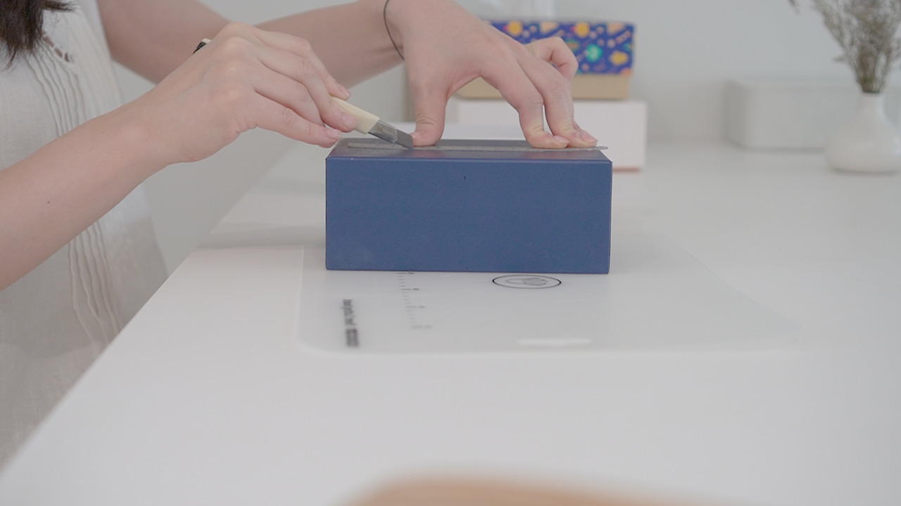 오늘 이 상자들로 이 두 보관함을 깔끔하게 정리해 볼 거예요! 우선 두꺼운 상자의 아랫면을 십자가 형태로 잘라줄게요. 정확히 재단할 수 록 나중에 수납함이 각이 잘 맞아서 이뻐 보이니, 최대한 정확하게 잘라주세요 :)