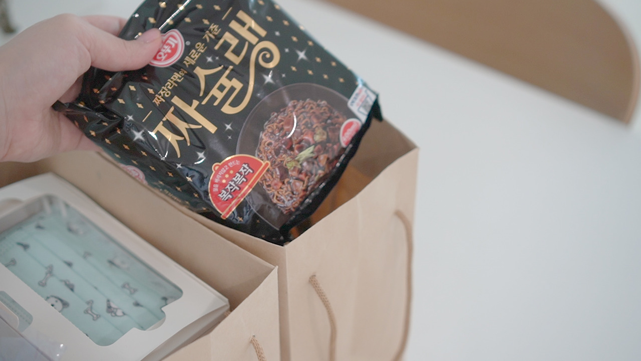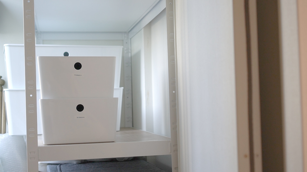 저는 식탁 테이블 옆 수납장 가장 높은 칸에 수납함을 넣을 계획이라서 가벼운 마스크랑 라면의 수납함으로 활용하려고 해요. 나중에 헷갈릴 수 있으니, 깔끔하게 라벨 작업도 해줬어요. :)