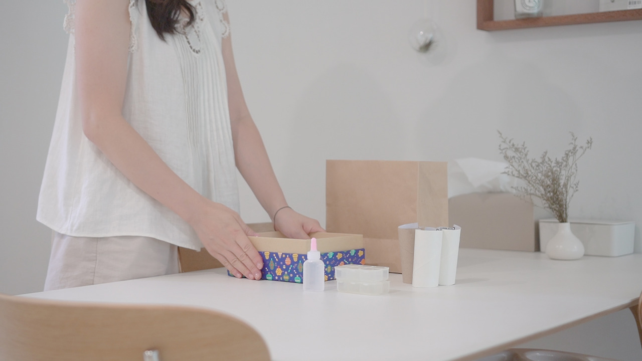 버리는 상자, 휴지심, 고무장갑, 쇼핑백으로 정리정돈 하기.