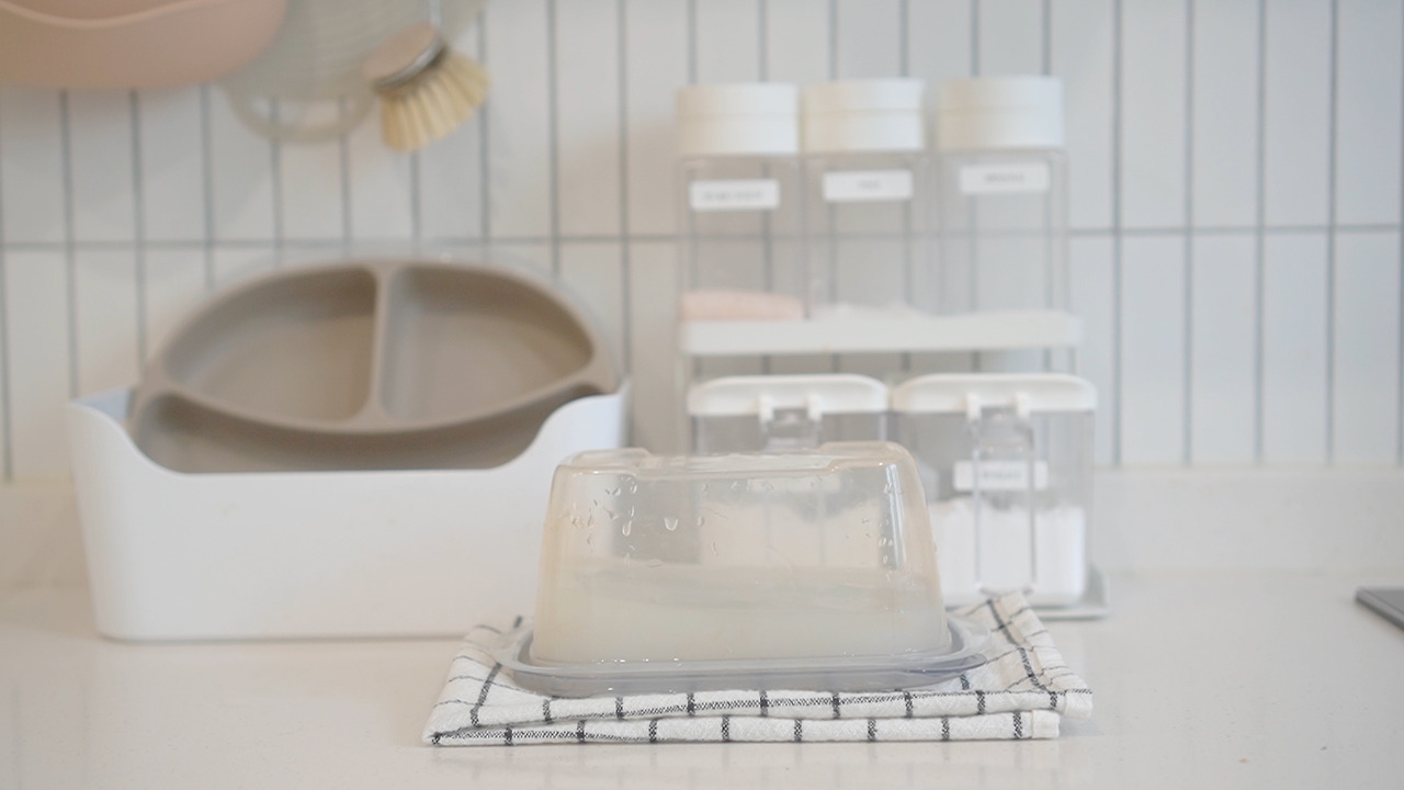 보통 밀폐용기의 뚜껑에 냄새가 가장 많이 베인다고 해요. 이렇게 용기를 뒤집어 놓으면 뚜껑에 베인 냄새까지 제거할 수 있어요. :)