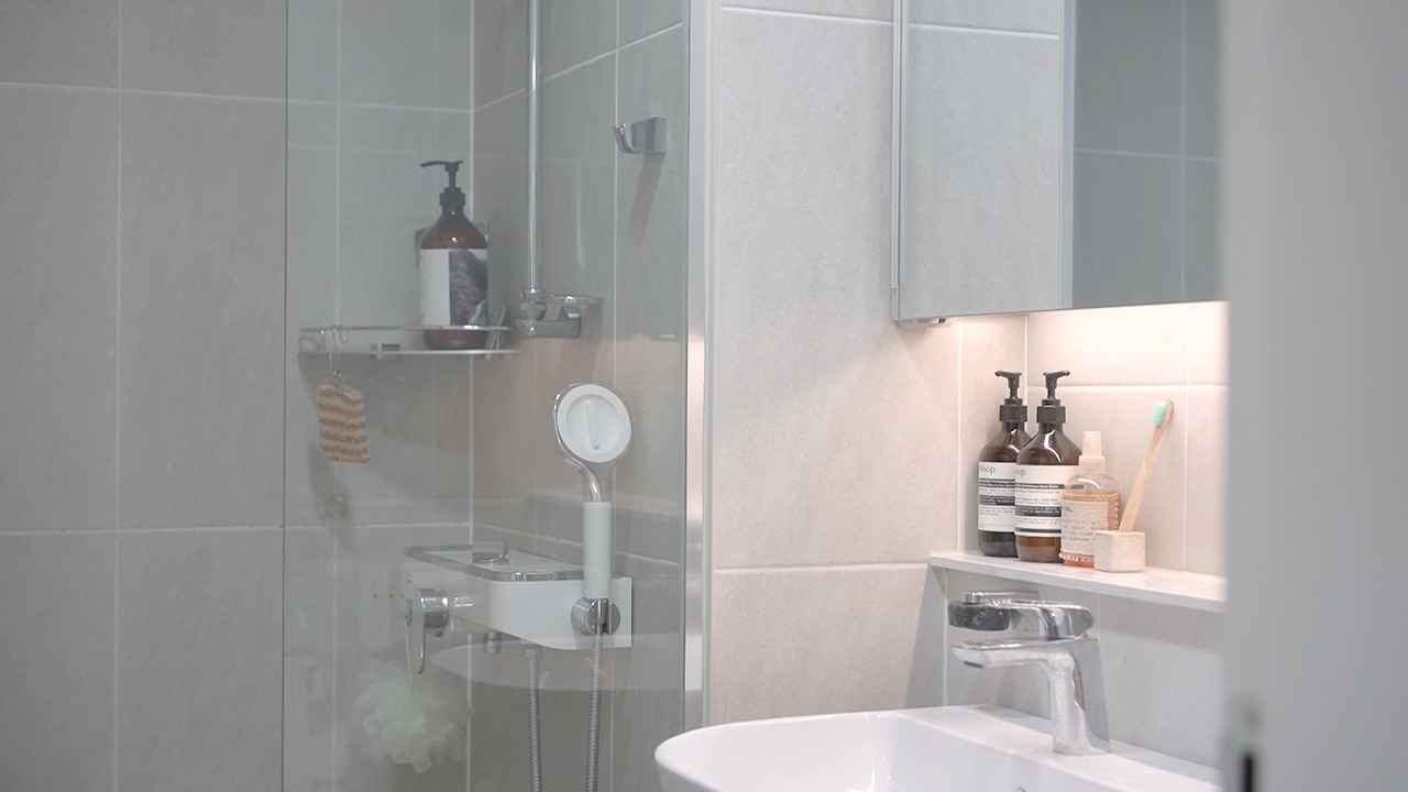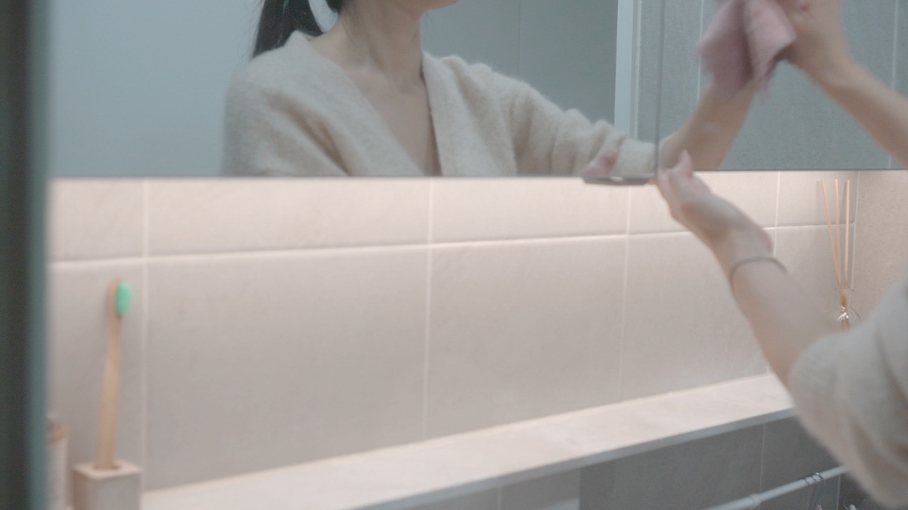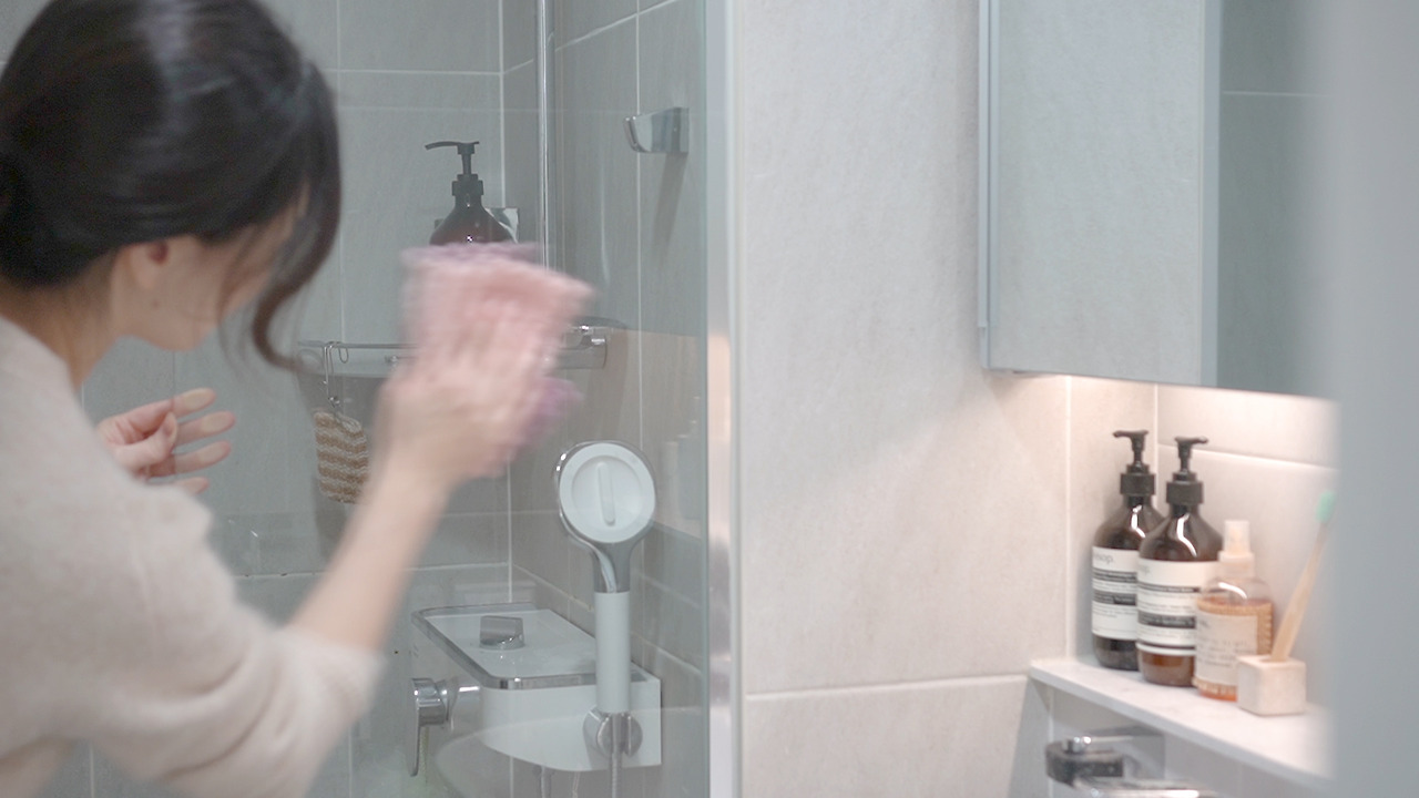 물때가 잘 생기는 욕실 거울도 린스로 닦으면 더 오랫동안 유리가 반짝반짝 유지됩니다.
