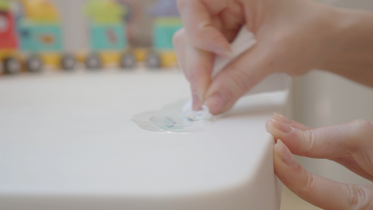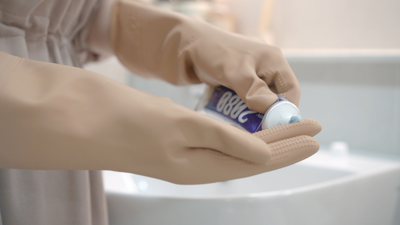 우선 치약을 청소용 고무장갑에 손톱만큼만 짜주세요.