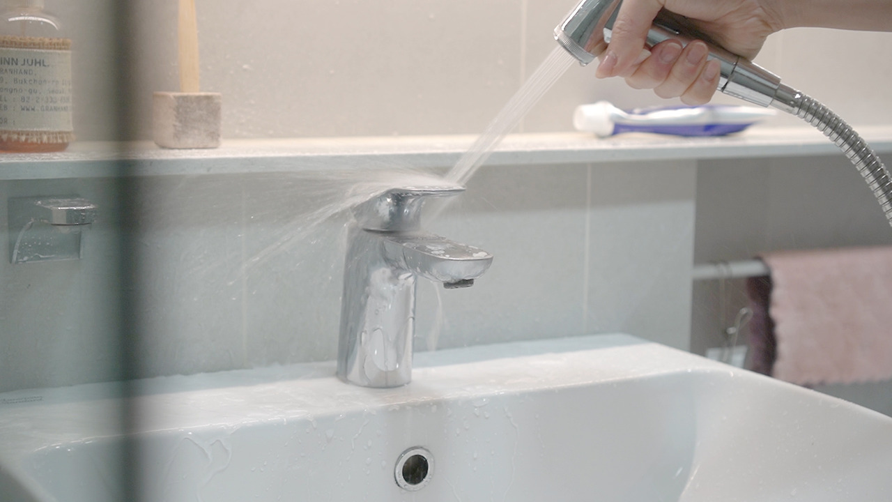 마지막으로 물로 한번 씻어내 주면 치약의 연마제 성분으로 묵은 때는 물론 수전이 반짝반짝 변해요. :)