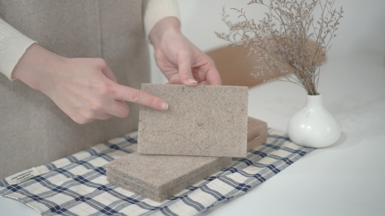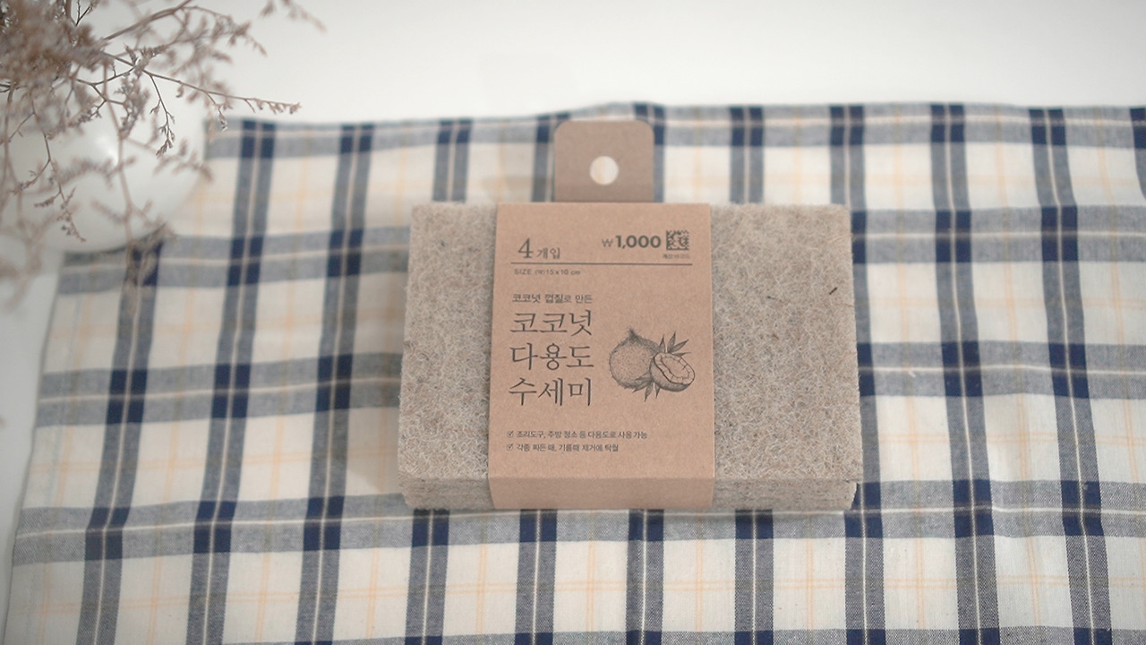 이 제품은 코코넛 껍질로 만든 친환경 수세미예요.