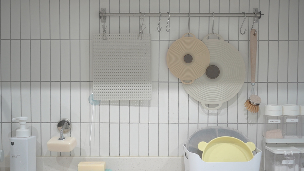 저는 주방비누를 싱크대 주변에 자석 홀더를 설치해서 거치대로 사용하고 있어요. 이렇게 고체 비누를 보관하면 관리하면 물때가 생기지 않아서 액체 세제보다도 관리가 더 편하답니다. :)