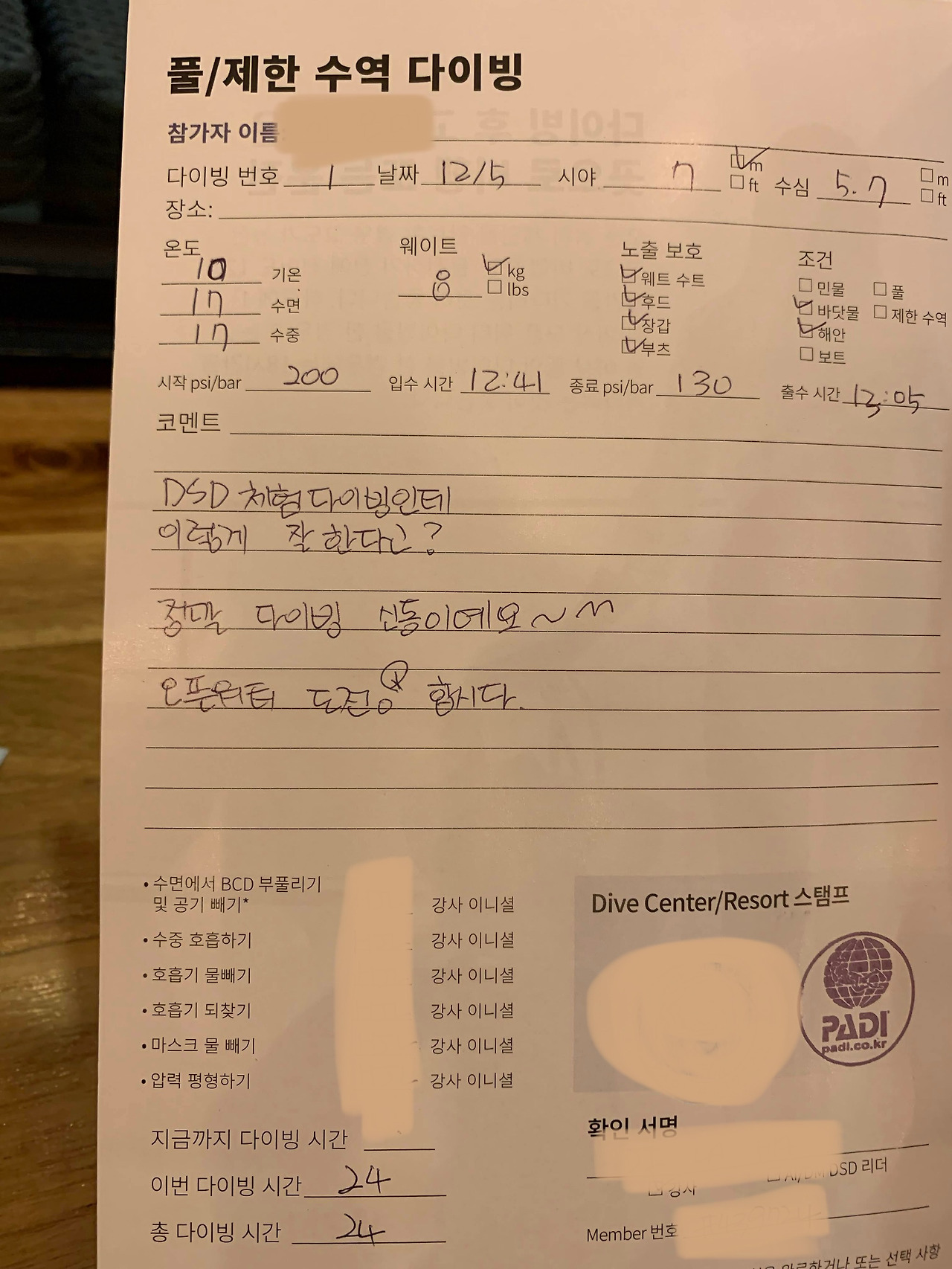 겨울에 하는 다이빙이라는 게 더 색다를 경험이었던 것 같기도 하고… 너무 좋았다.