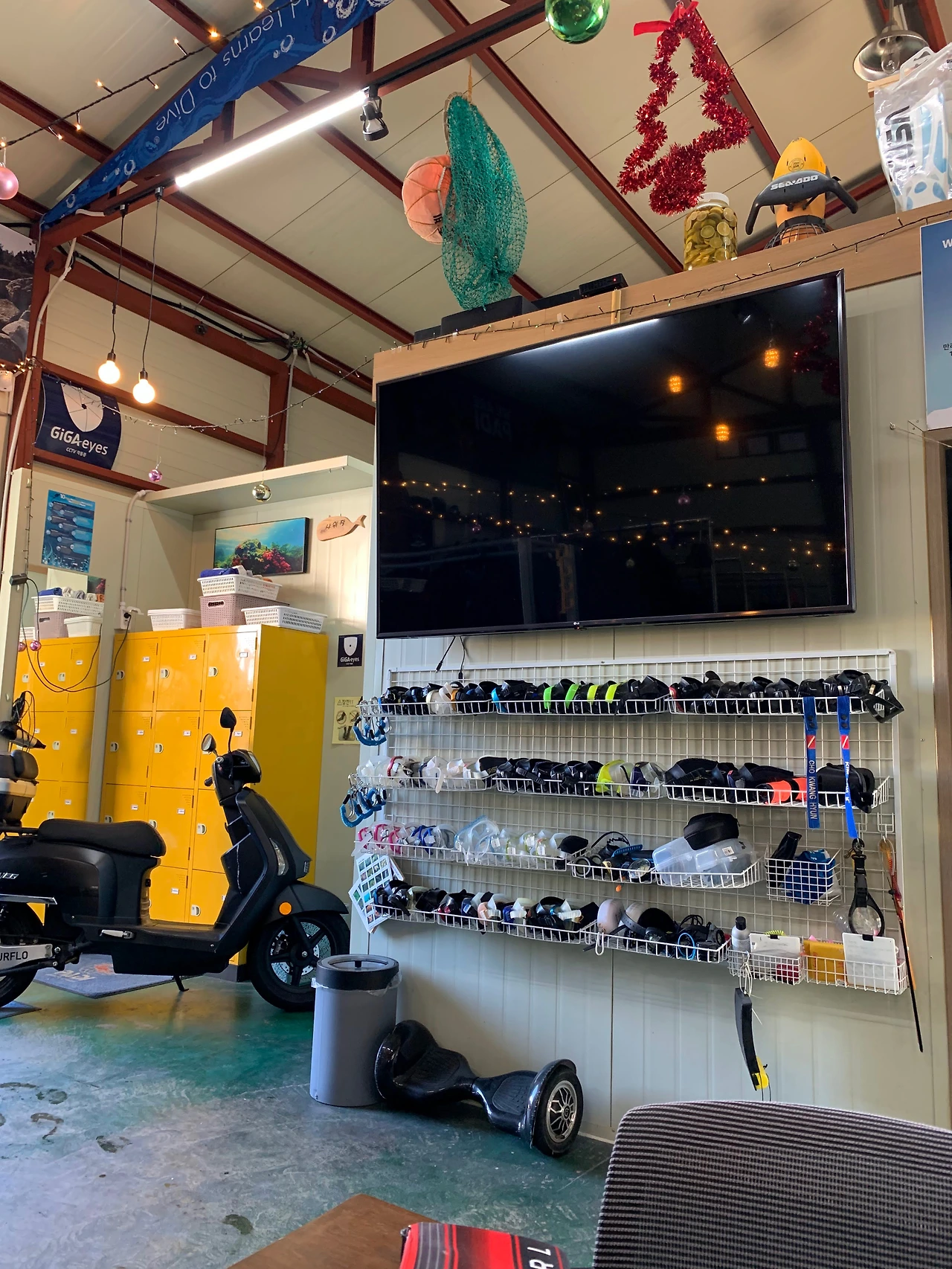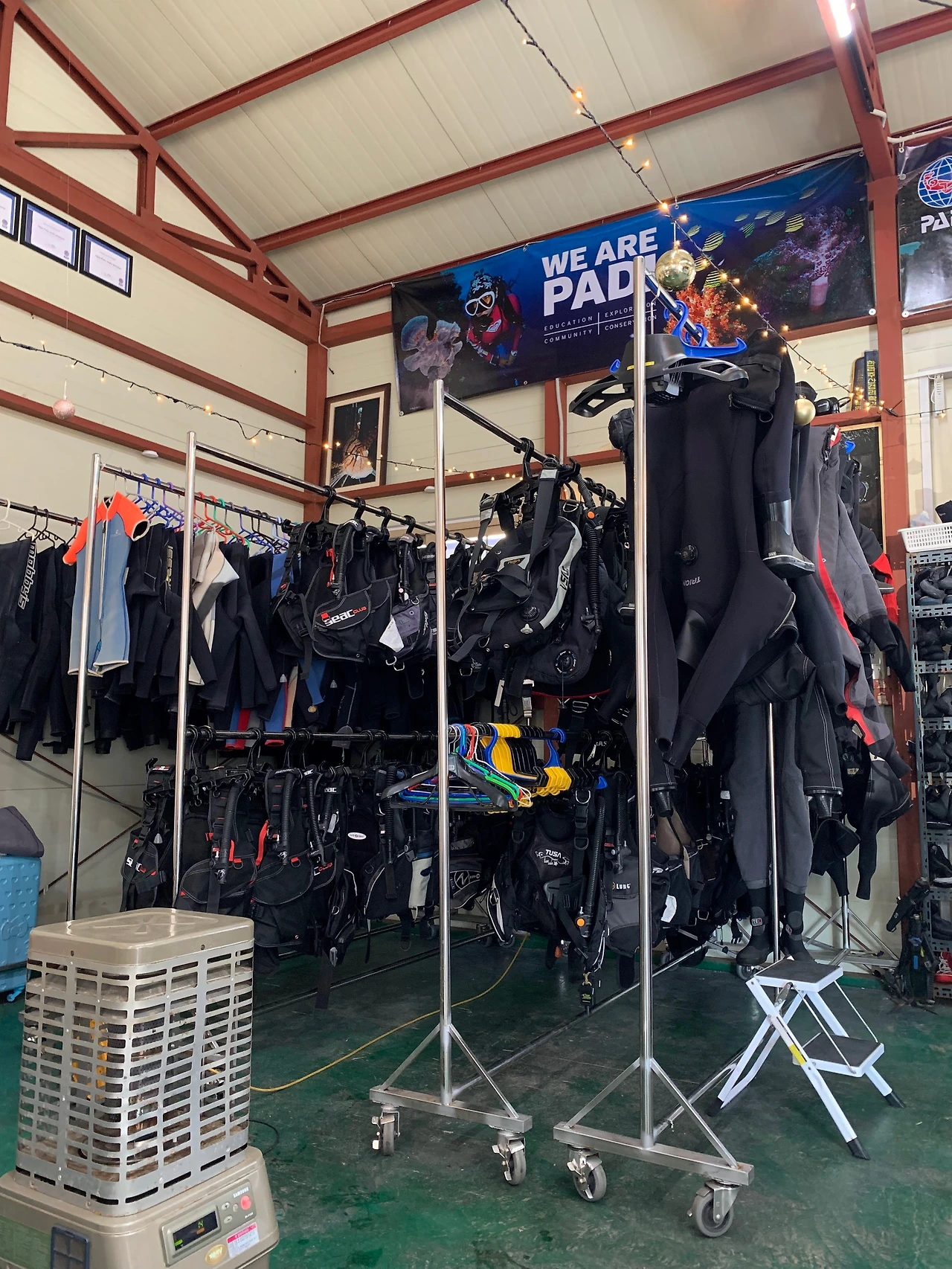 시간이 되어 다이빙 센터에 들어가자 각종 슈트들이 곧 스쿠버 다이빙을 하게 될게 실감 났다.